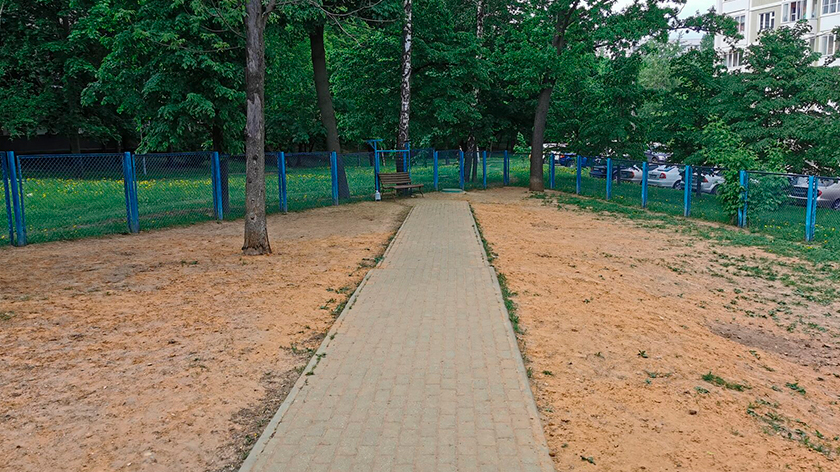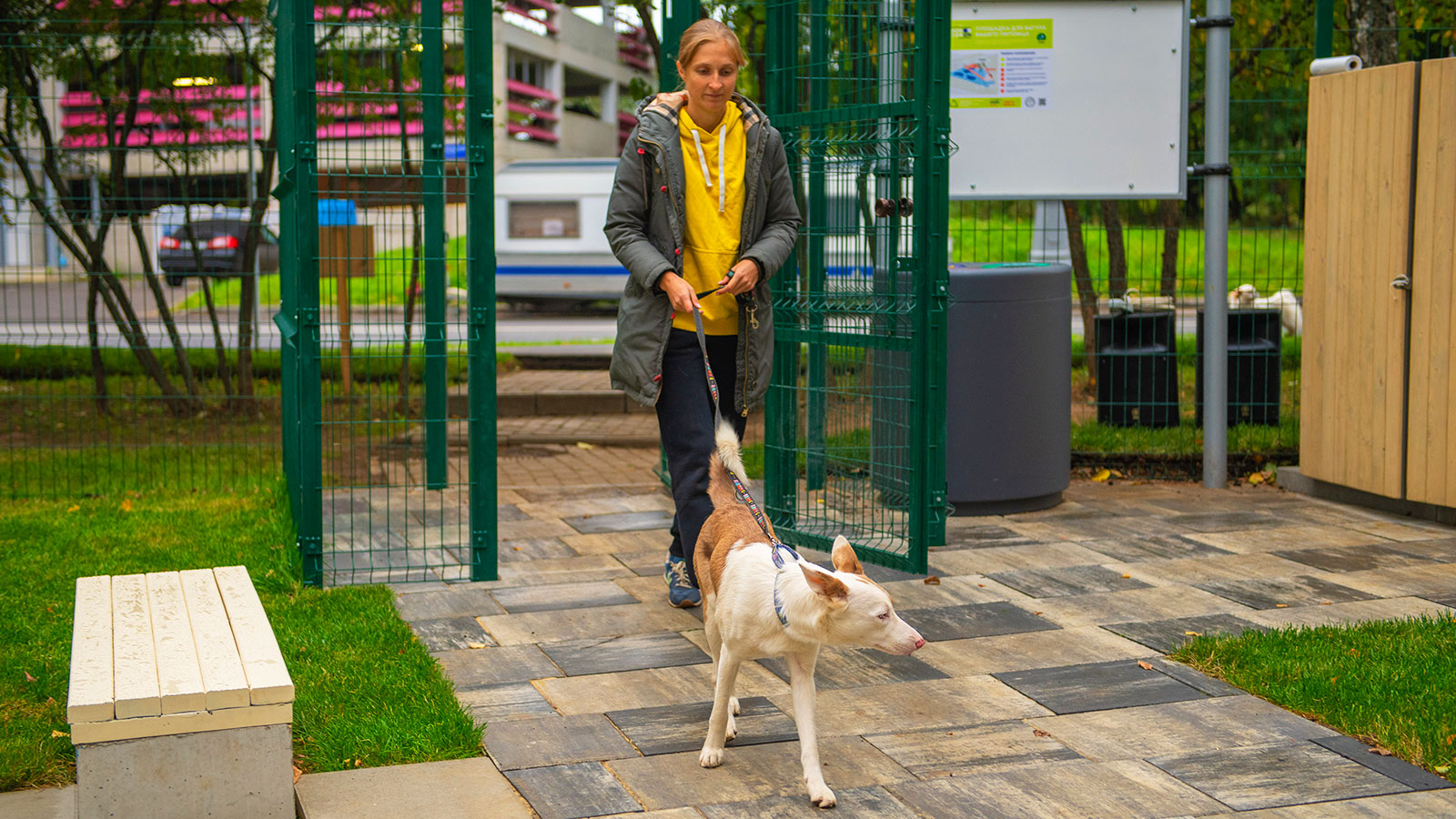 На пространстве для выгула есть вся необходимая для владельцев собак и питомцев инфраструктура – отдельные зоны для игр и выгула, а также зона отдыха для хозяев, оборудованная навесом и лавочкой.
