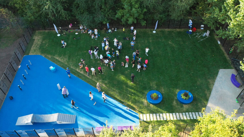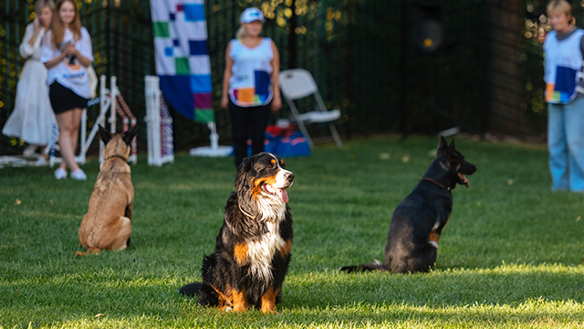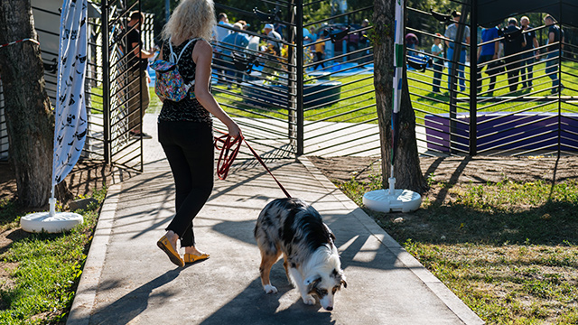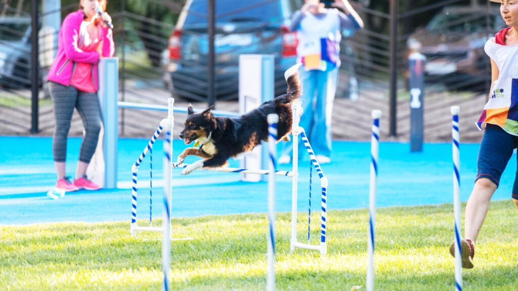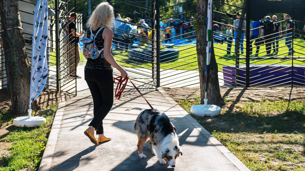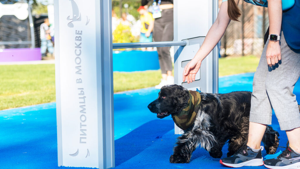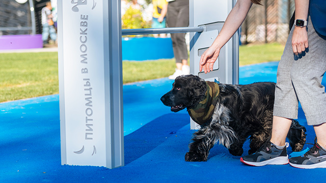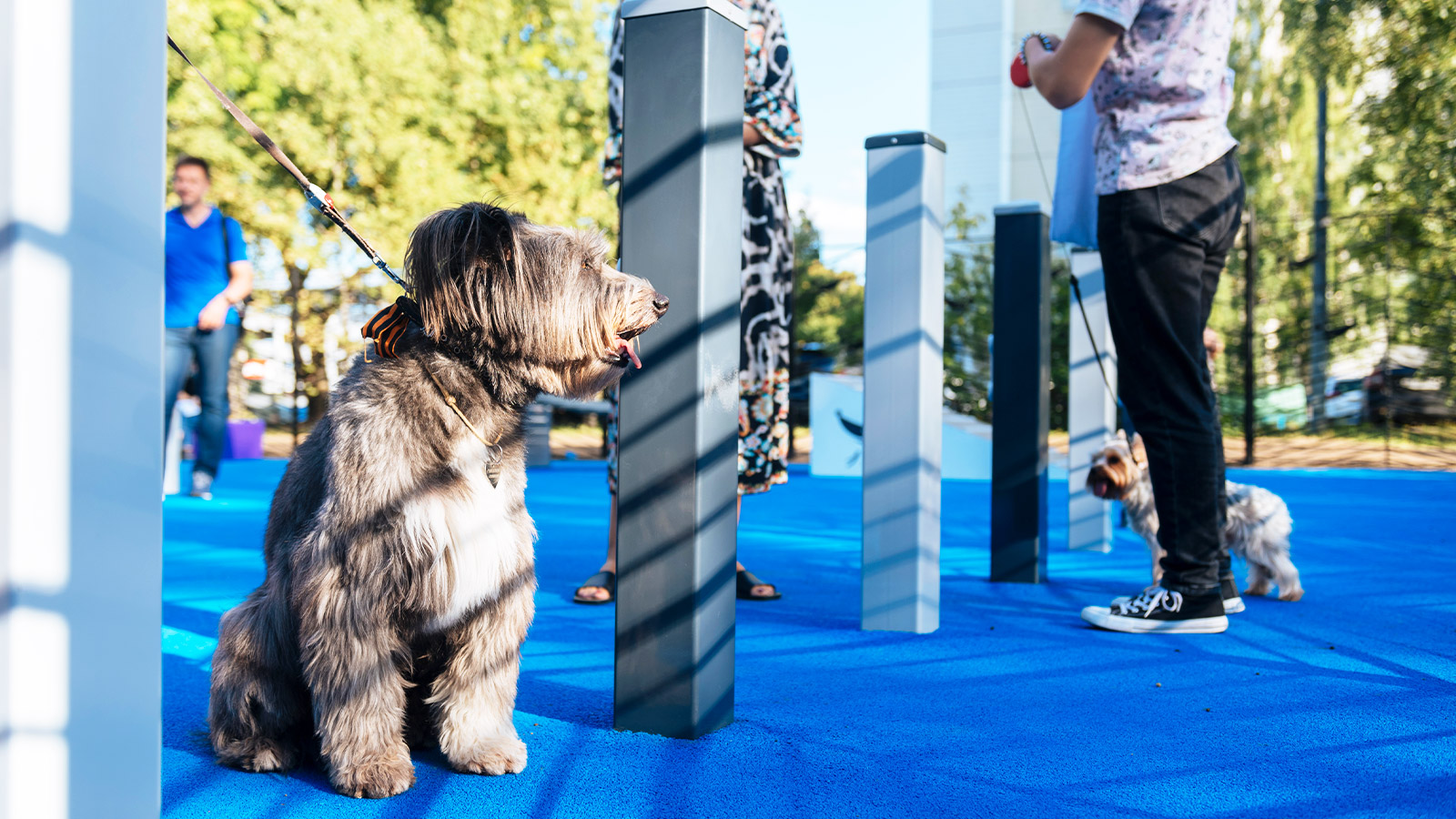 В зоне для дрессировки установлен тренажер-слалом для занятий на координацию движений, барьер для прыжков и мостик, который помогает научить собаку преодолевать препятствия на безопорной поверхности.