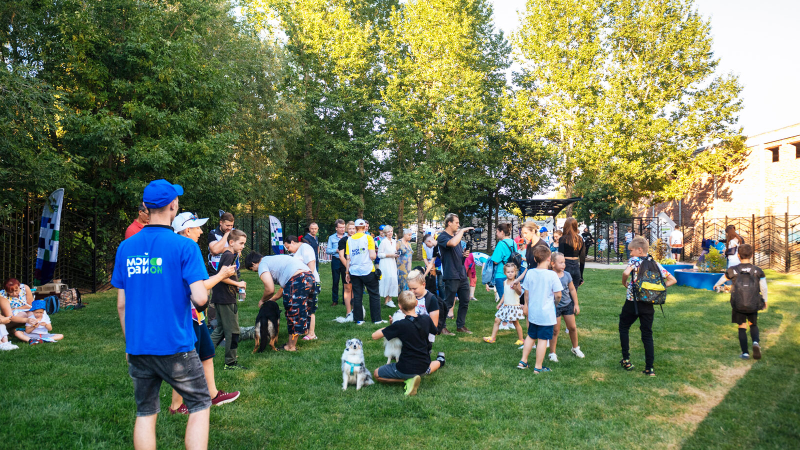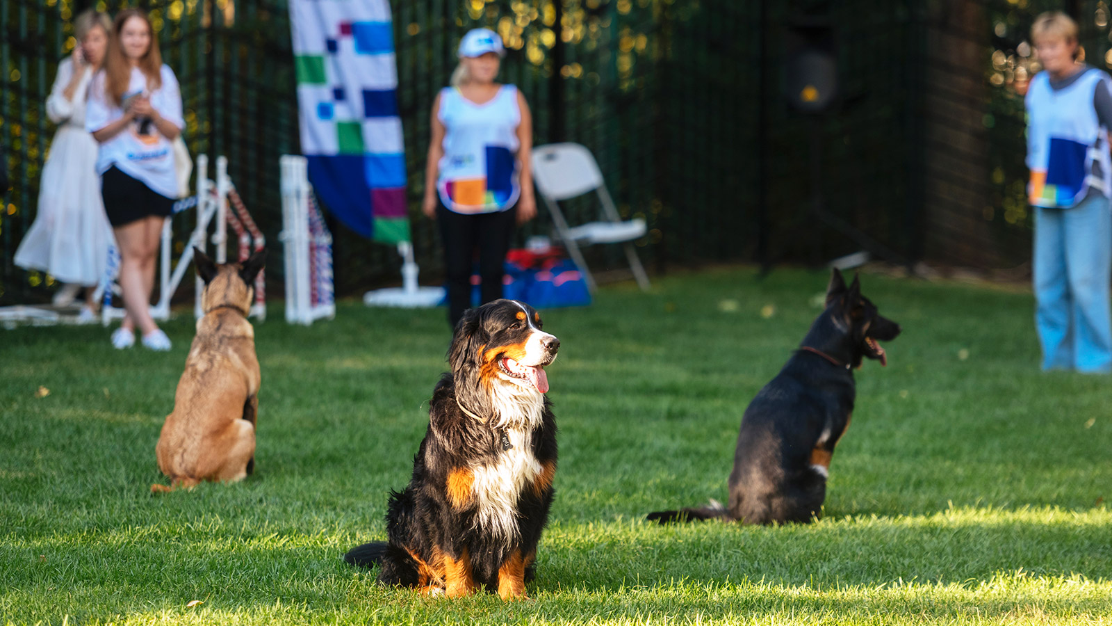 На месте, предназначенном для выгула, выложен газон, чтобы собакам было комфортно бегать.