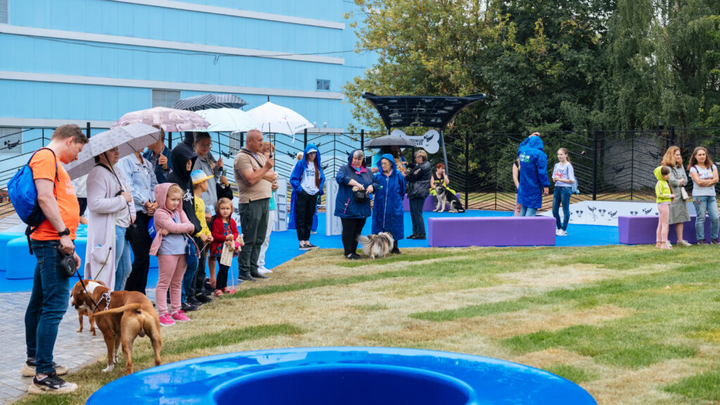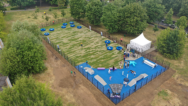 До благоустройства на месте этой площадки был неосвещённый пустырь. Теперь здесь появился полноценный комплекс, в котором есть место и для выгула домашних любимцев, и для тренировок, и для отдыха владельцев животных.