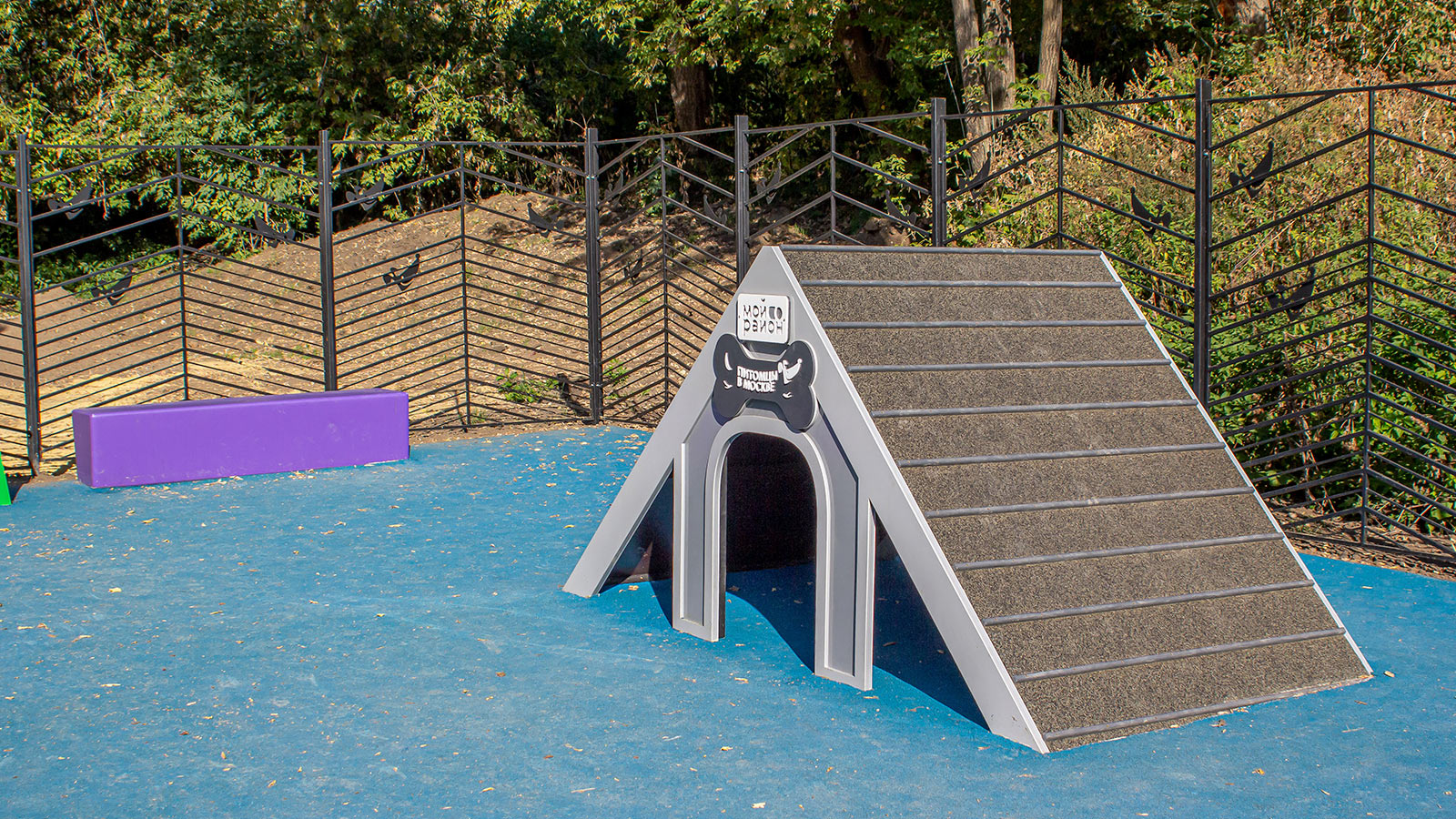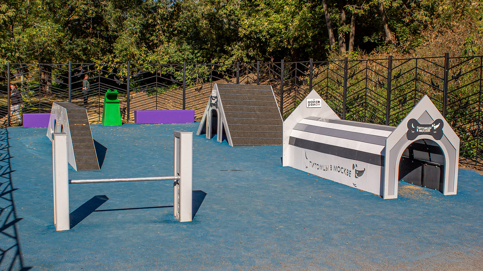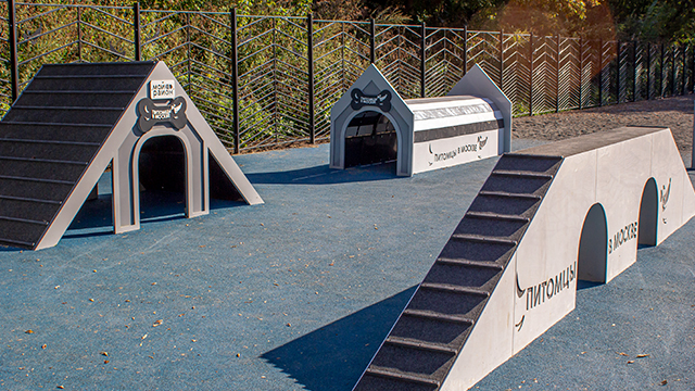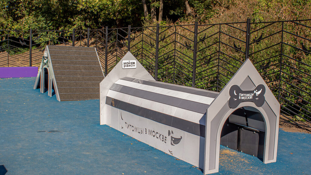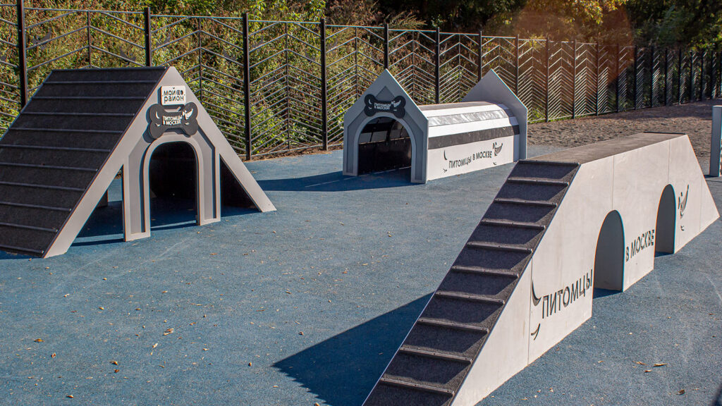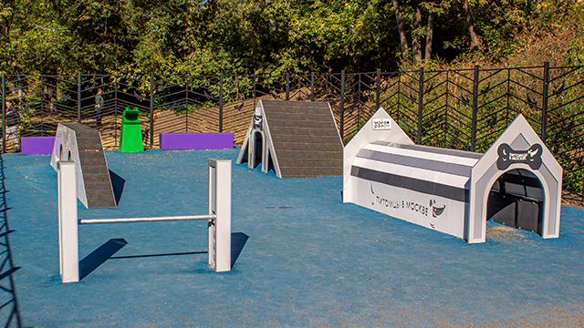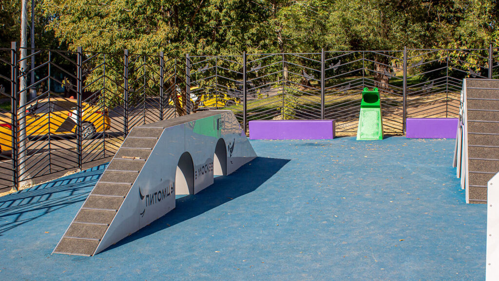Для тренировки питомцев на площадке установили наклонную стенку, которая позволяет оттачивать навык собаки перепрыгивать препятствия. Кроме того, появились бум, который развивает координацию движений, регулируемый барьер «Перекладина» и тоннель – он помогает собаке побороть страх перед закрытыми пространствами.