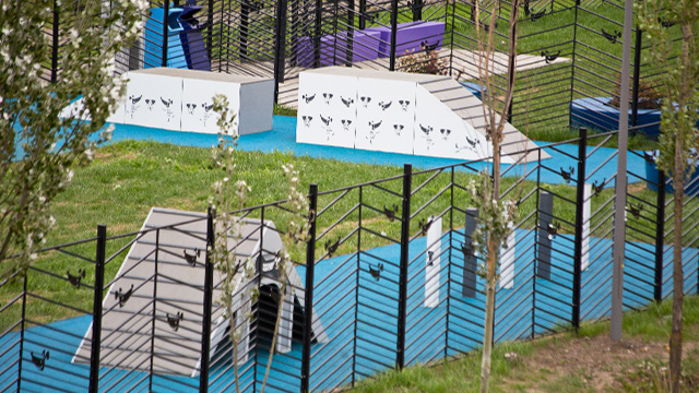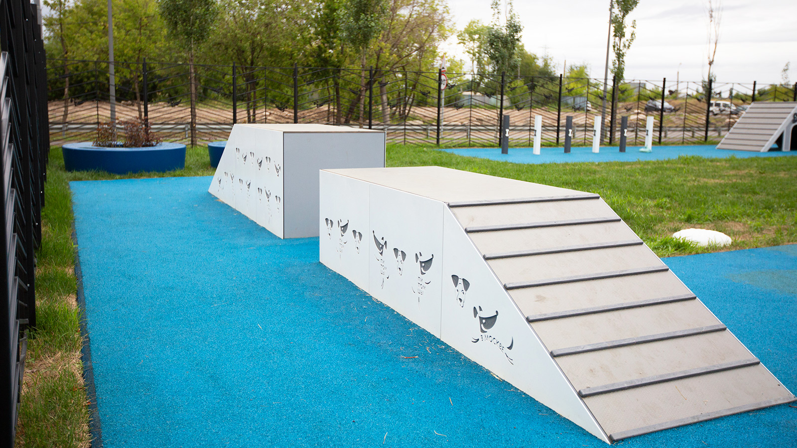 В зоне для дрессировки установлены современные снаряды: слалом, бум, барьеры, тоннель, окоп. В зоне тренировочных снарядов используется покрытие из резиновой крошки.