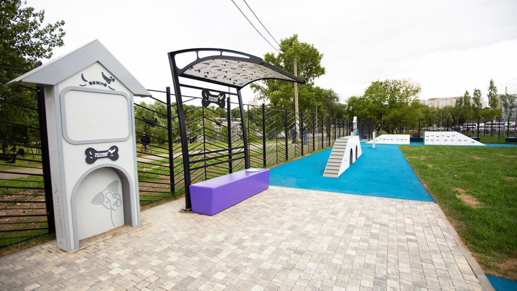 Площадка продумана с точки зрения безопасности и комфорта, как для питомцев, так и для окружающих людей.