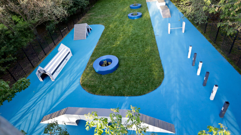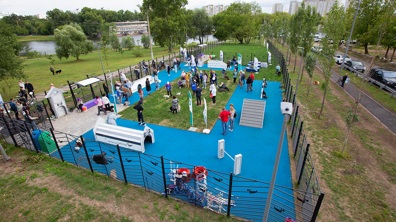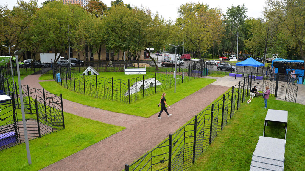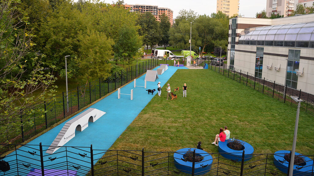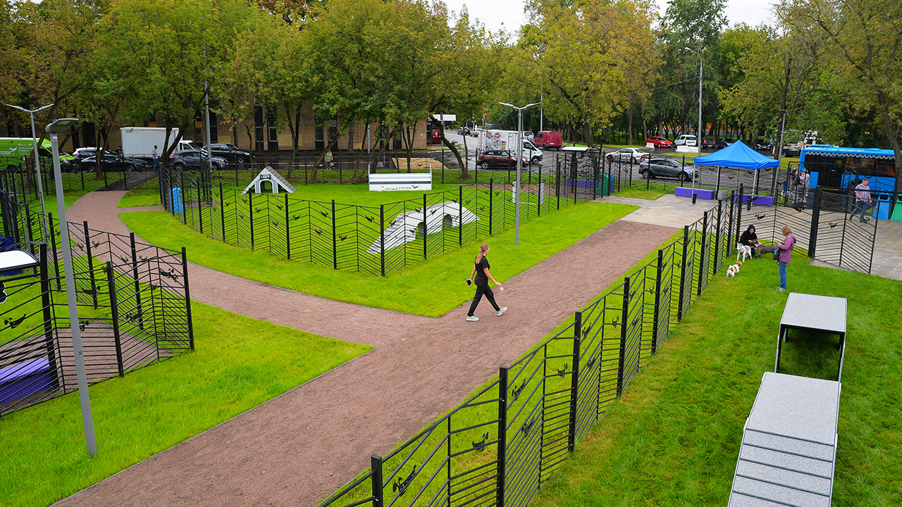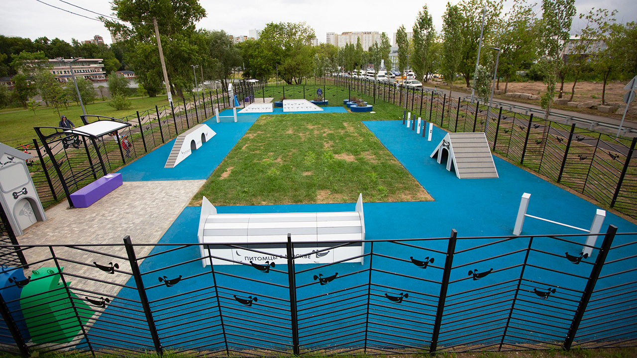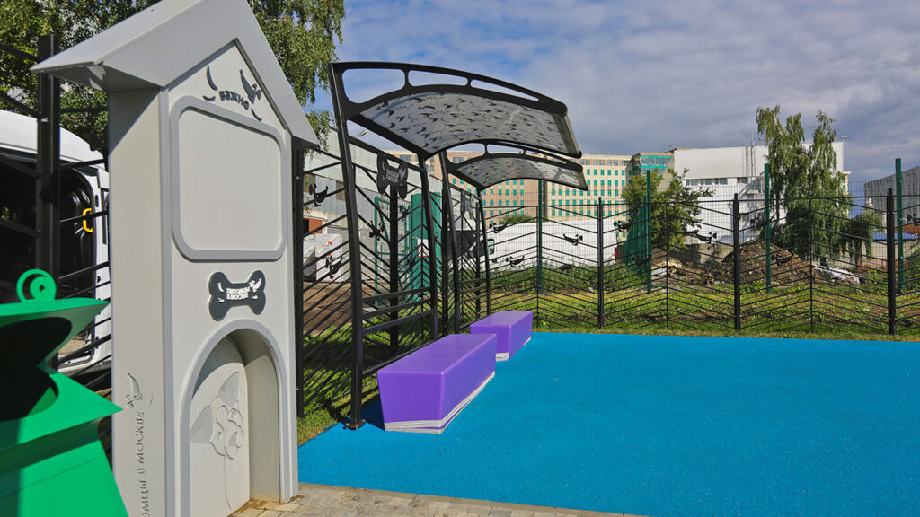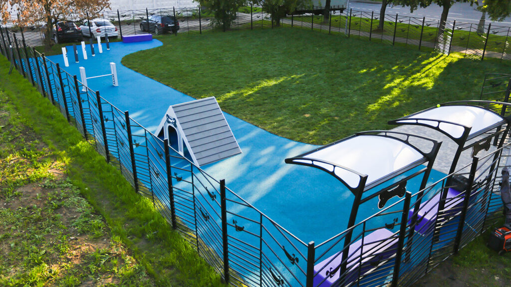 Основная отличительная черта новых площадок – продуманность с точки зрения безопасности и комфорта. Все площадки оснащены специальным входом-тамбуром с двойными воротами, которые предотвращают случайный выход собак с огражденной территории. В качестве покрытия используется рулонный газон, устойчивый к вытаптыванию, а там, где позволяет площадь, организованы дополнительные участки с резиновой крошкой.