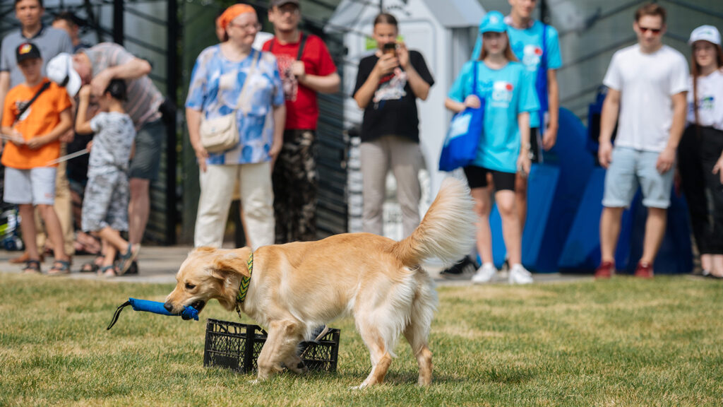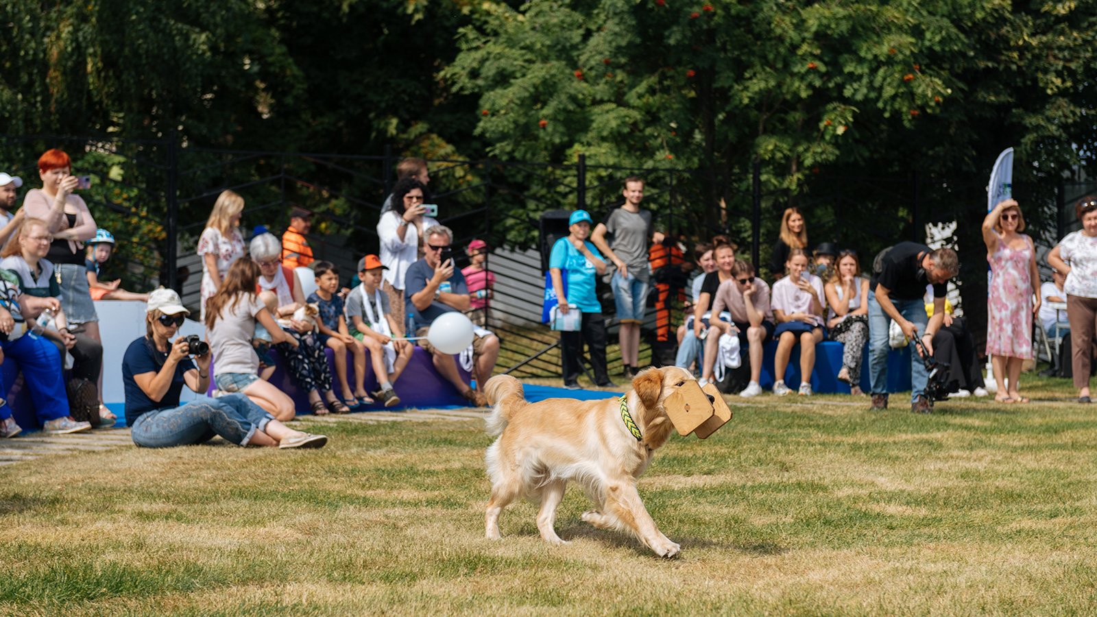 Территория площадки для выгула и дрессировки собак разделена на функциональные зоны: выгульную и тренировочную, на которой установлены несколько видов снарядов для дрессировки, таких как бум, барьер, мостик. Для владельцев собак организована зона отдыха под навесом.