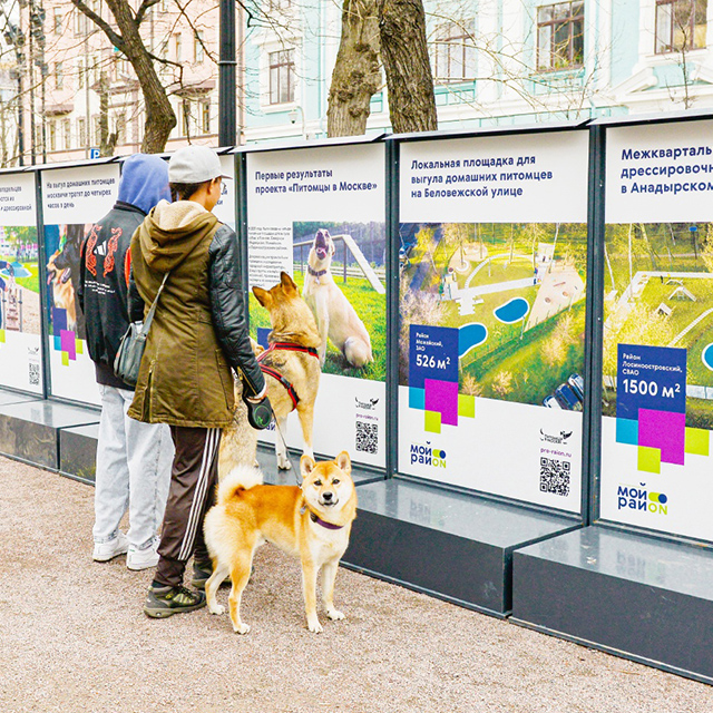 В апреле 2022-го года на фестивале «Пасхальный дар» на Тверском бульваре прошла выставка, посвященная проекту «Питомцы в Москве». На больших стендах можно было увидеть площадки для выгула собак, которые в прошлом году появились в четырех районах – Ясенево, СеверноеМедведково, Лосиноостровский и Можайский.