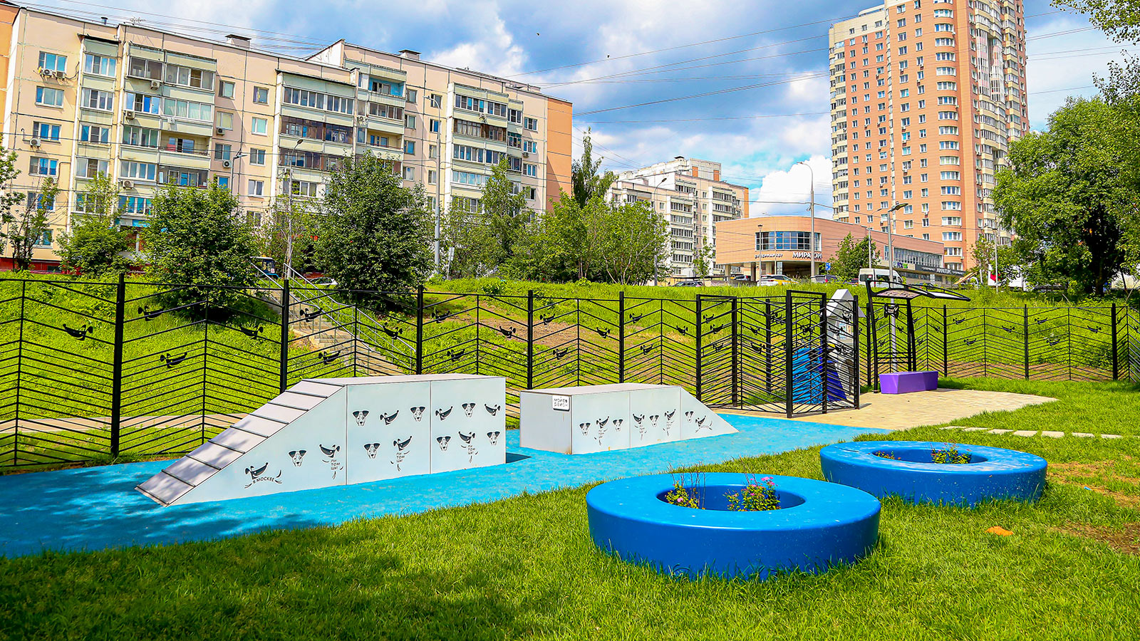 На месте, где раньше был пустырь открылась обновленная площадка для выгула и дрессировки собак. После реконструкции здесь появились две зоны для тренировки. Вся площадка огорожена металлическим забором. Установлено освещение.