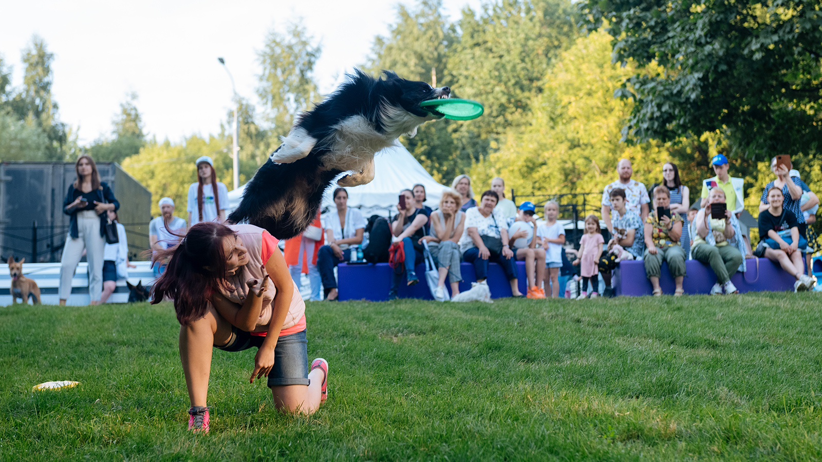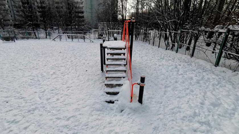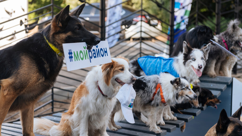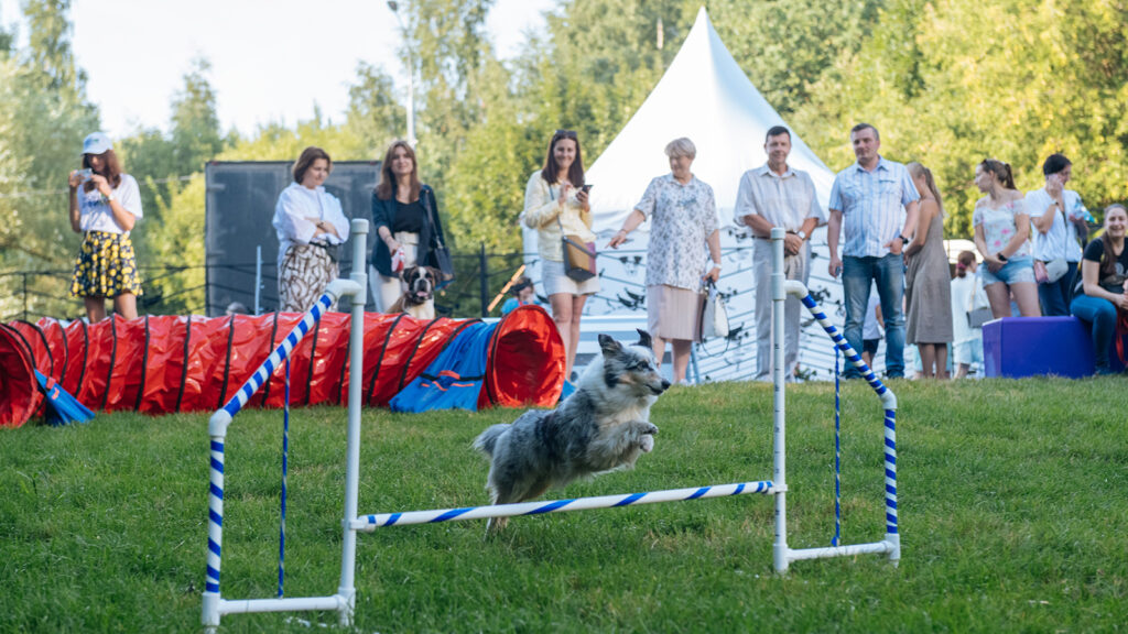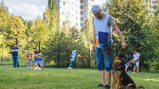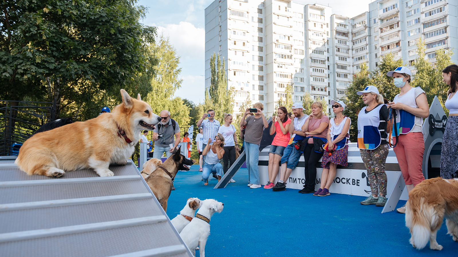 Территория площадки для выгула и дрессировки собак разделена на функциональные зоны: выгульную и тренировочную, на которой установлены несколько видов снарядов для дрессировки, таких как бум, барьер, мостик. Для владельцев собак организована зона отдыха под навесом.