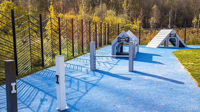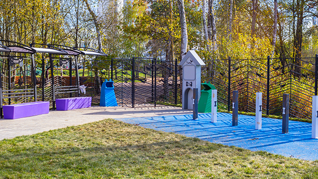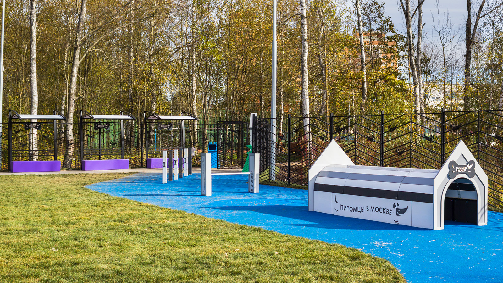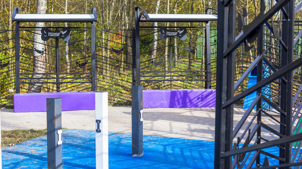 На новой площадке предусмотрена территория свободного выгула домашних любимцев и места для отдыха владельцев собак – пока питомцы играют друг с другом, их хозяева могут пообщаться на удобной лавочке под навесом.