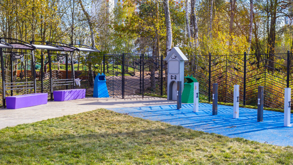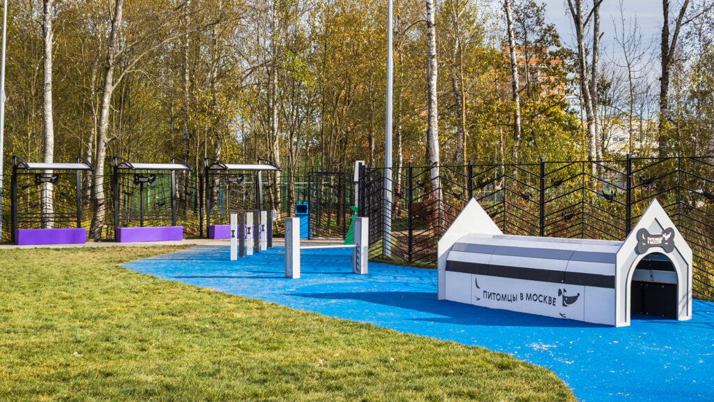 Здесь также установлен информационный стенд и специальные контейнеры для уборки за питомцами.
