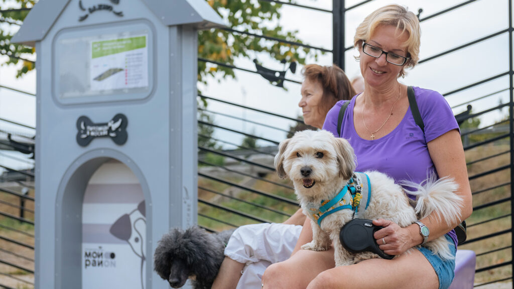 Площадка оснащена специальным входом-тамбуром, который предотвращает случайный выход собак с огражденной территории. На выходе стоят урны для отходов.
