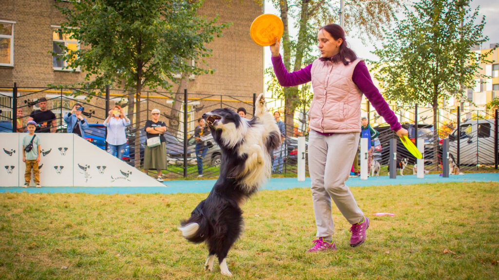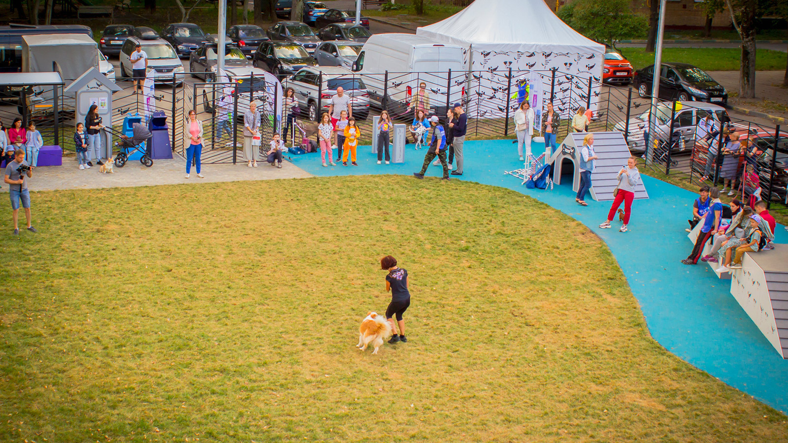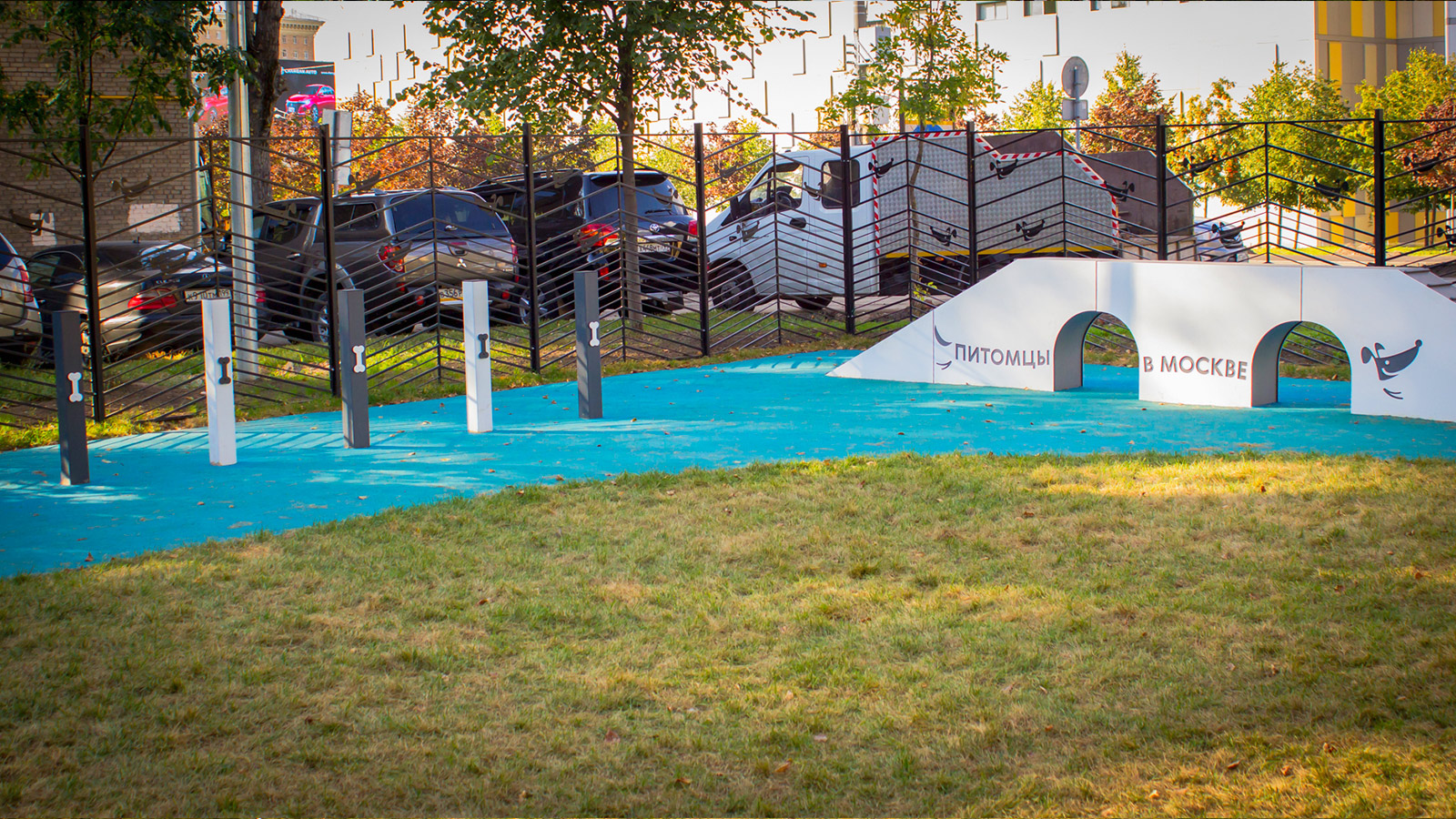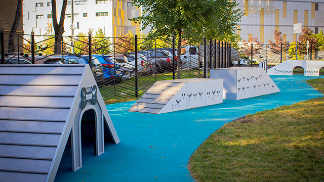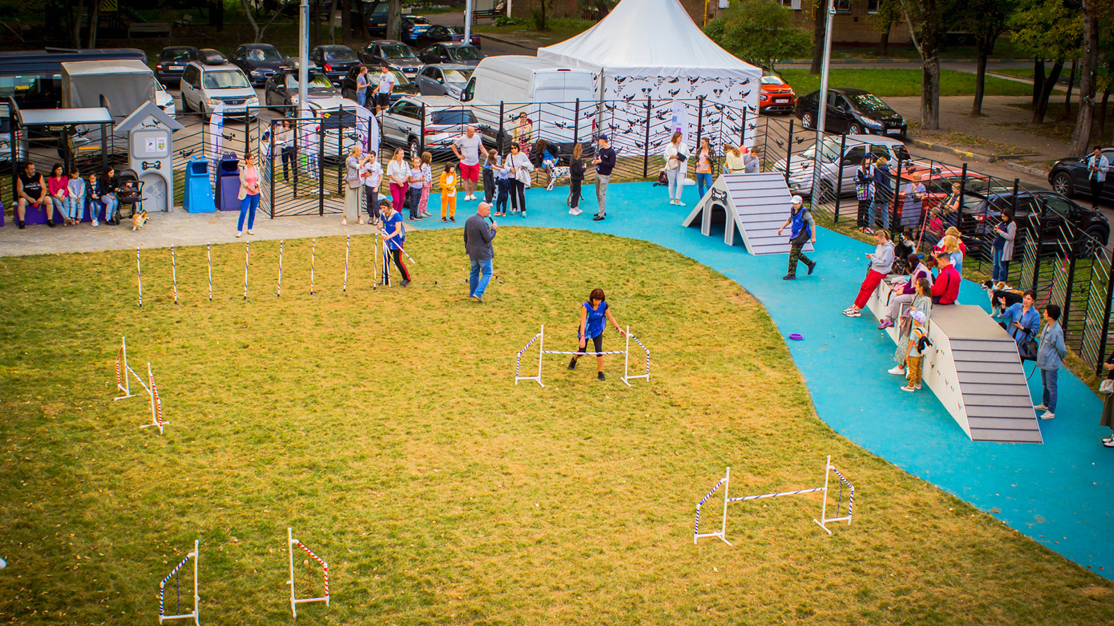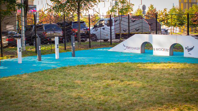 Слалом для развития координации движений, барьер-перекладина для прыжков, а также бум, чтобы научиться хорошо координировать движения. Для владельцев собак организована зона отдыха под навесом.