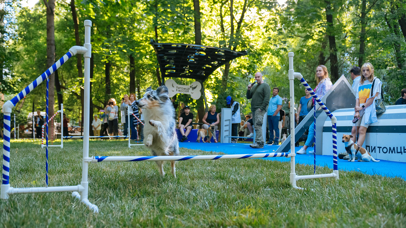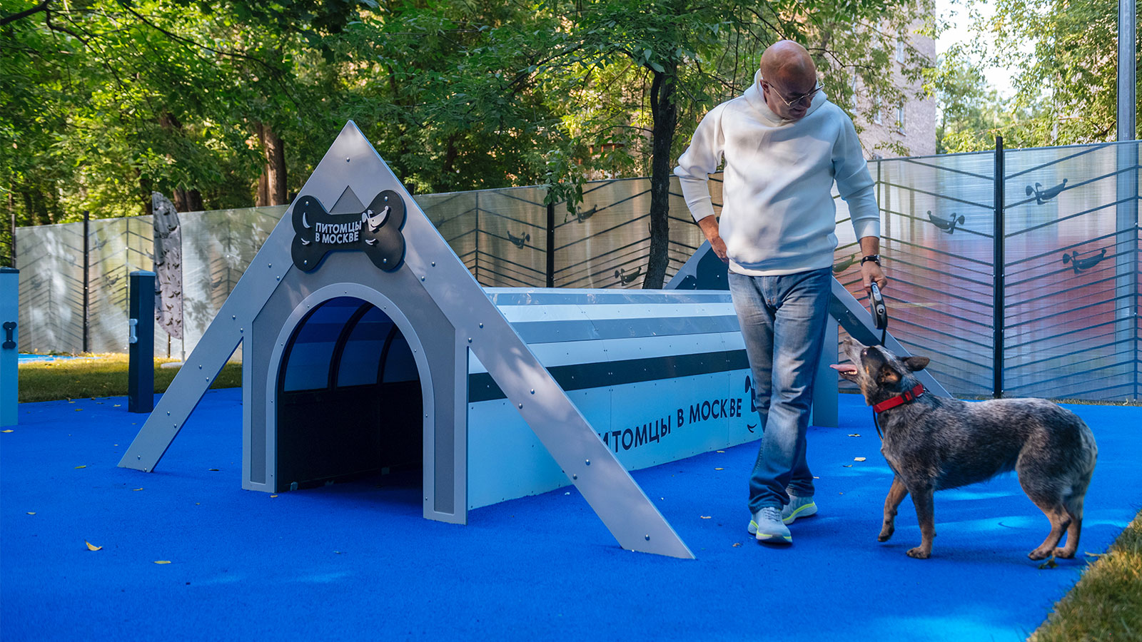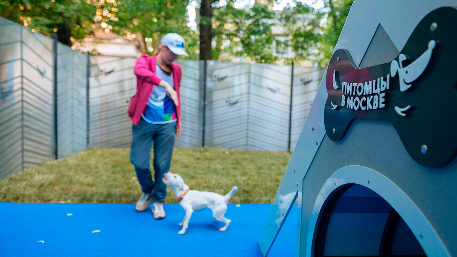 Территория площадки разделена на функциональные зоны: зону свободного выгула и тренировочную. На площадке установлено несколько видов снарядов для дрессировки, таких как бум, барьер, мостик. Для владельцев собак организована зона отдыха под навесом.