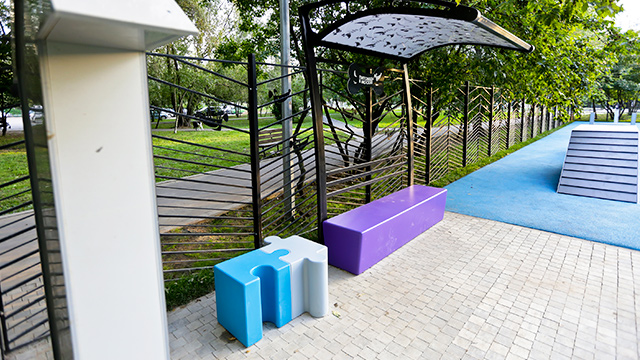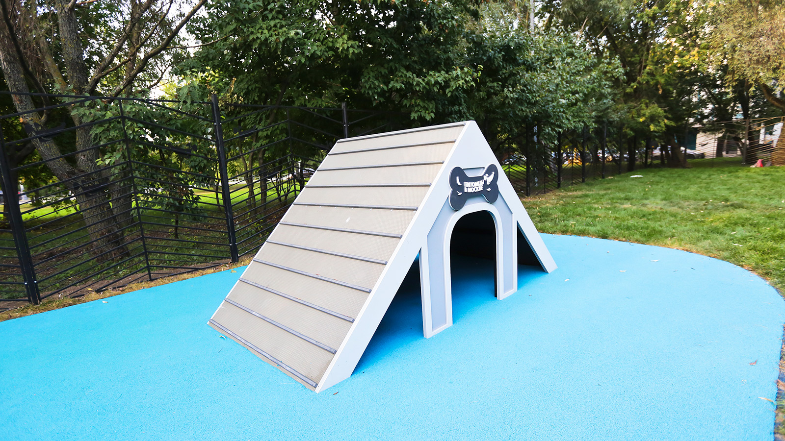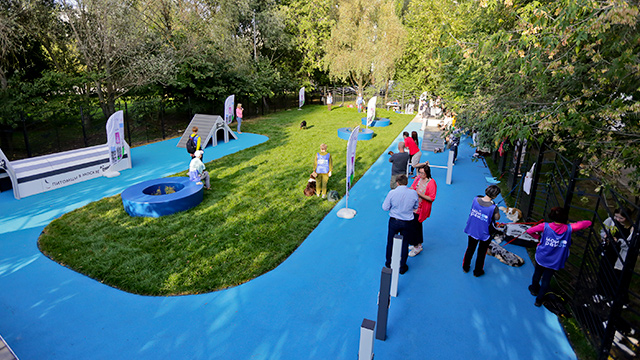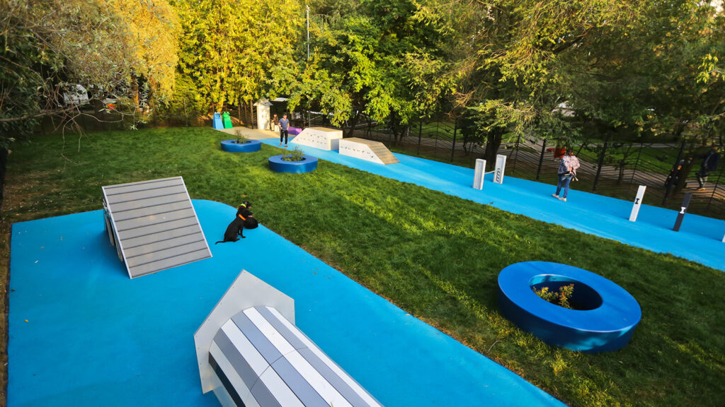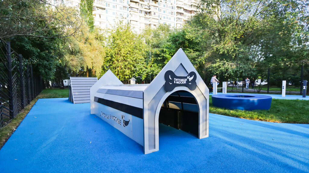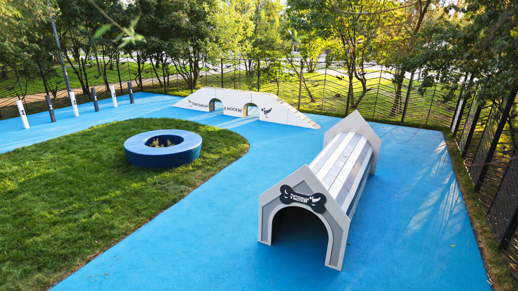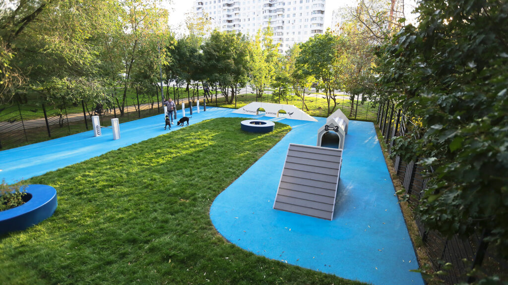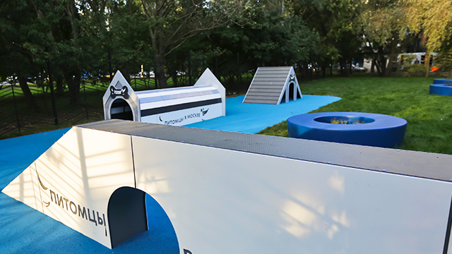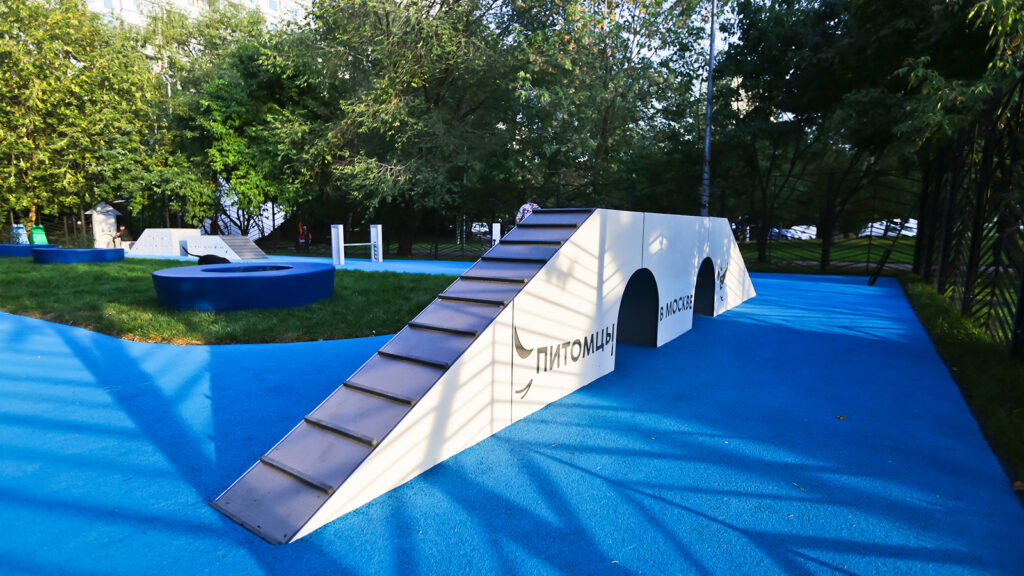 Особое внимание на новой комфортной площадке уделено тренажерам для питомцев. Слалом и бум развивают координацию движений, барьер повышает выносливость, тоннель помогает побороть страх перед закрытыми пространствами, а окоп и наклонная стенка учат преодолевать препятствия.