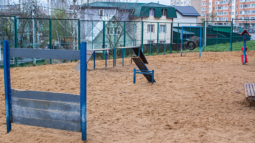 Для тренировки питомцев установлены наклонная стенка, слалом, окоп, бум, который развивает координацию движений, регулируемый барьер «Перекладина» для развития выносливости и тоннель – он помогает собаке побороть страх перед закрытыми пространствами.
