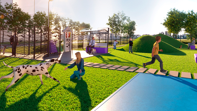 Для хозяев на площадке установили несколько скамеек, а также навес от дождя и солнца. Кроме того, оборудовали контейнеры для уборки за питомцами и информационный стенд.