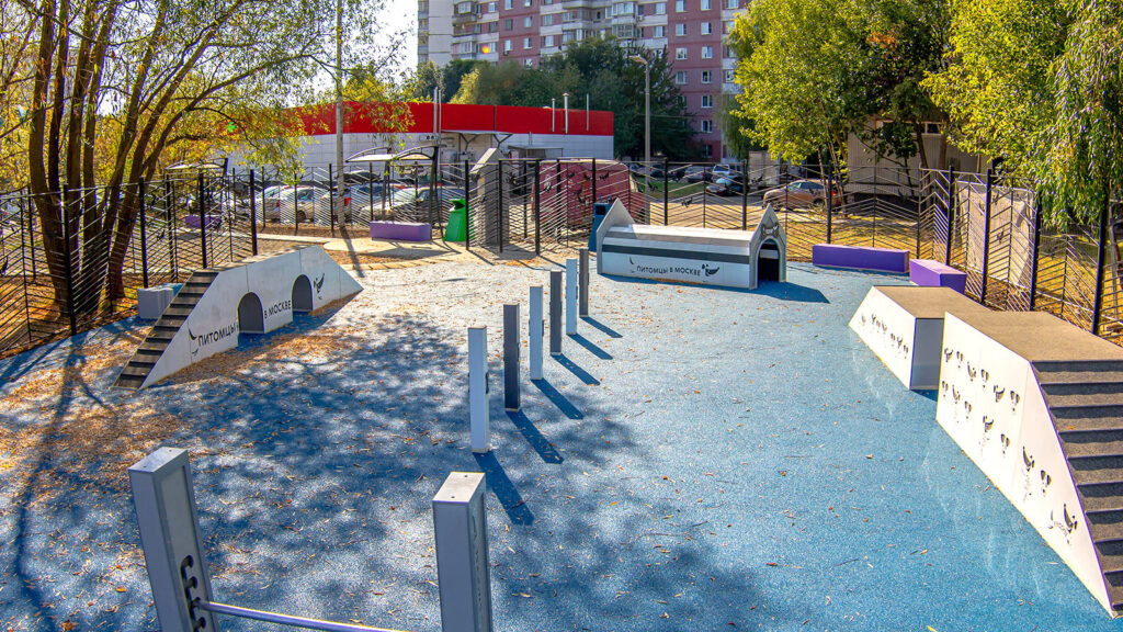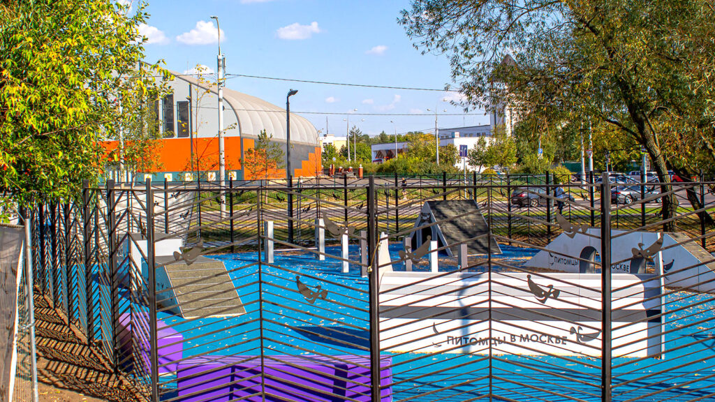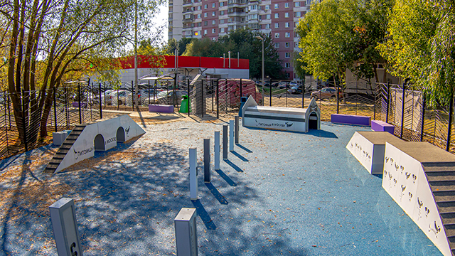 До благоустройства на месте этой площадки был неприглядный пустырь. После реконструкции здесь появились зоны для свободного выгула и дрессировок.