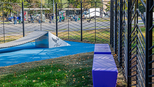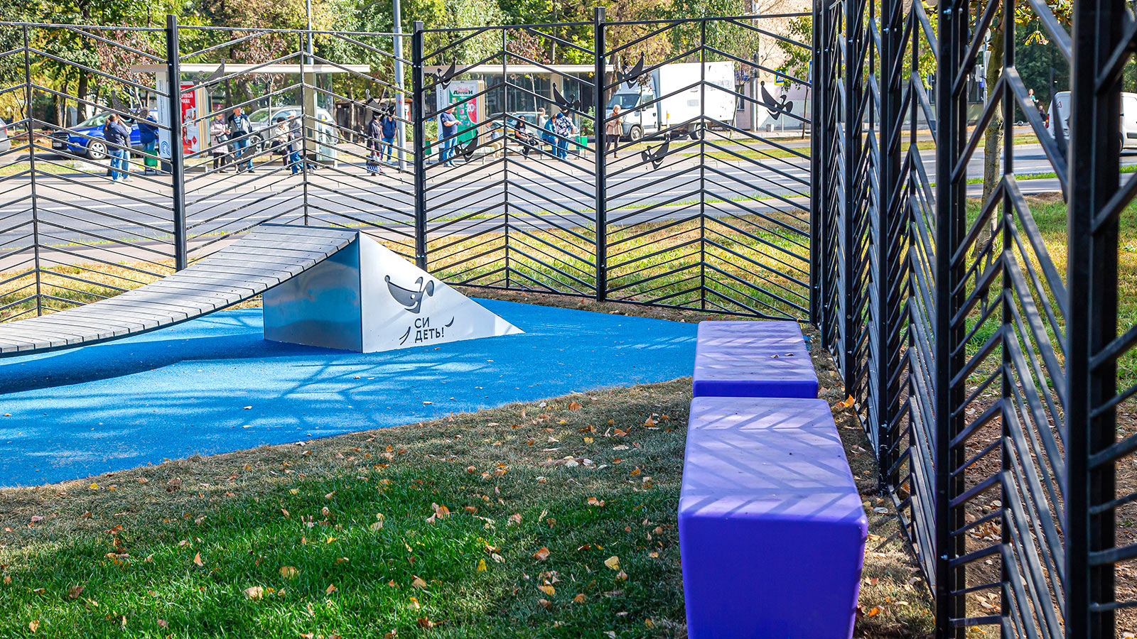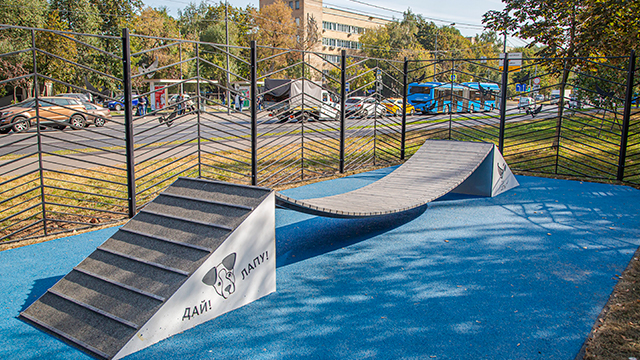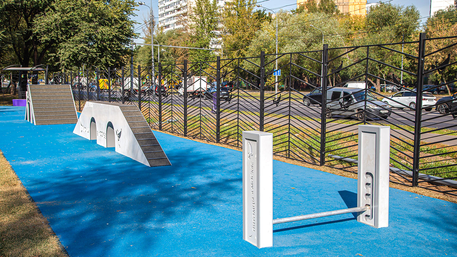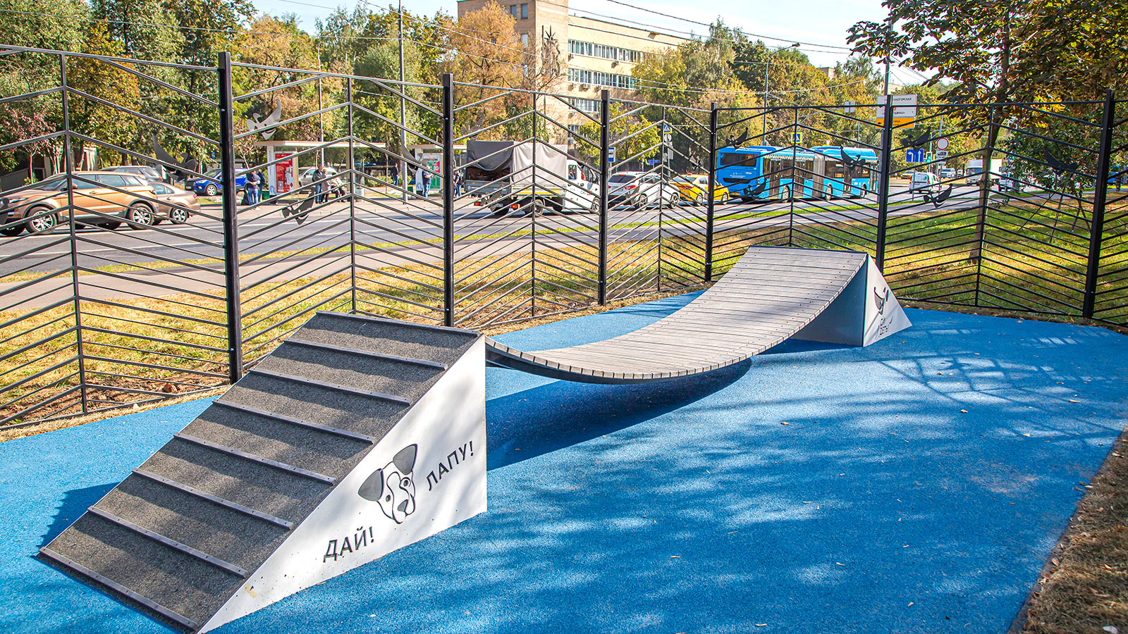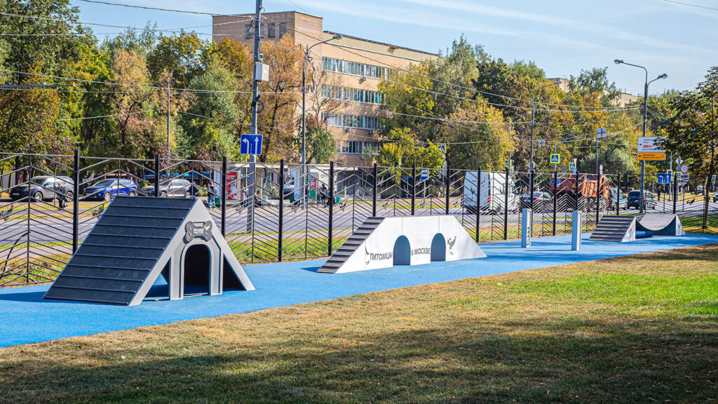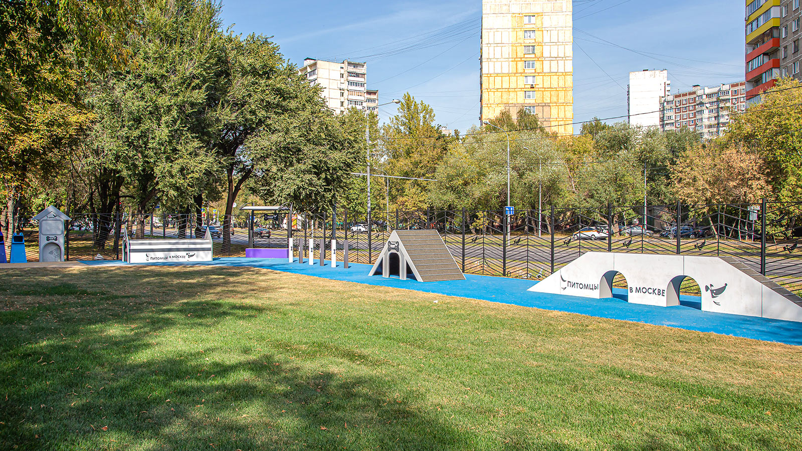 После реконструкции площадки здесь появились зоны для свободного выгула и дрессировок. Для тренировки питомцев на площадке установили наклонную стенку, которая позволяет оттачивать навык собаки перепрыгивать препятствия. Кроме того, появились бум, который развивает координацию движений, регулируемый барьер «Перекладина» и тоннель – он помогает собаке побороть страх перед закрытыми пространствами. А также на площадке установлены мостик и слалом.