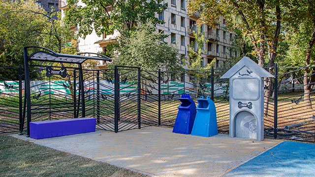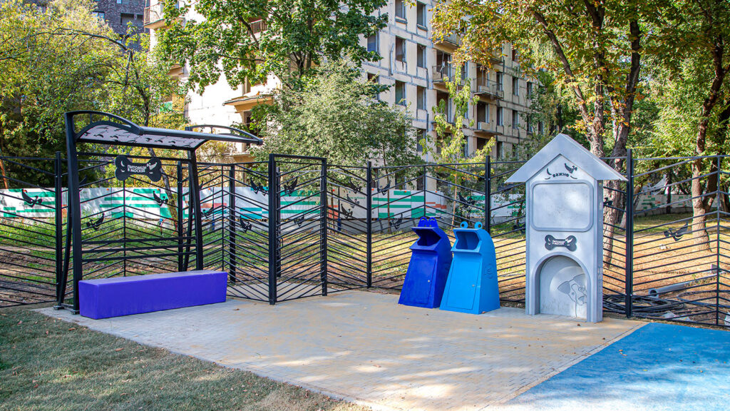 Вся территория площадки защищена ограждением, для хозяев с любимцами оборудовано два входа с тамбурами и двойными калитками.