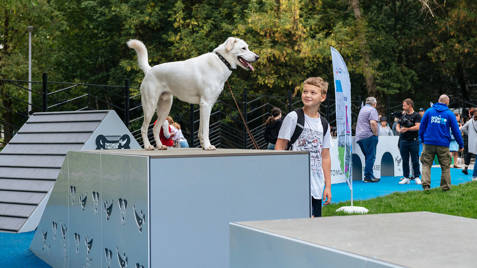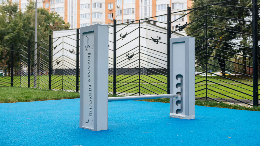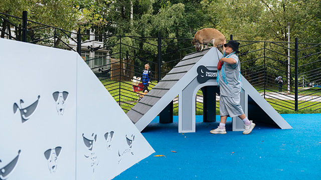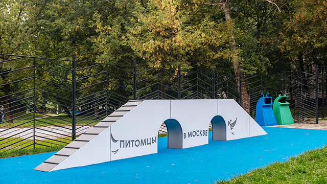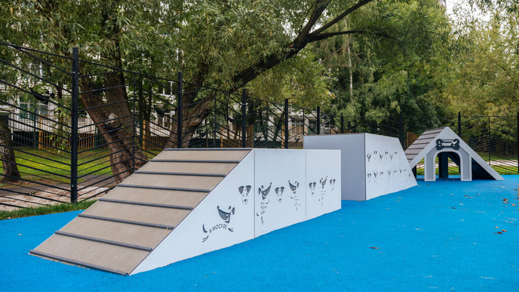 Особое внимание уделено тренажерам для питомцев. Бум развивает координацию движений, барьер «Перекладина» повышает выносливость, а окоп и наклонная стенка учат преодолевать препятствия.