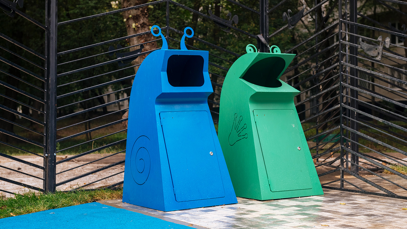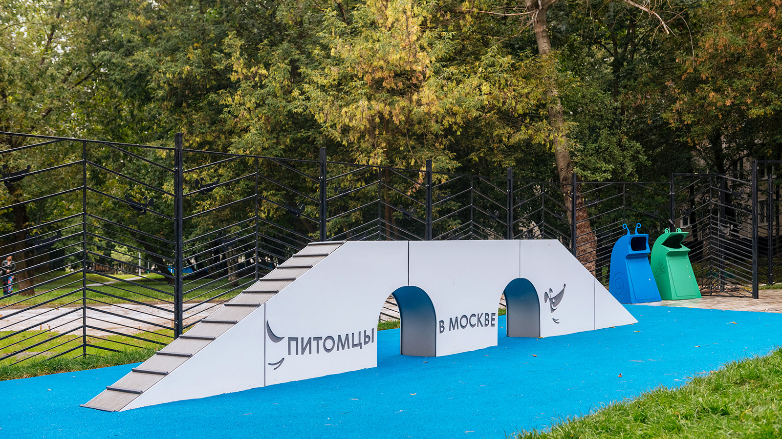 На территории площадки установлены специальные контейнеры для уборки за питомцами и стенд, где размещена актуальная информация для владельцев собак.
