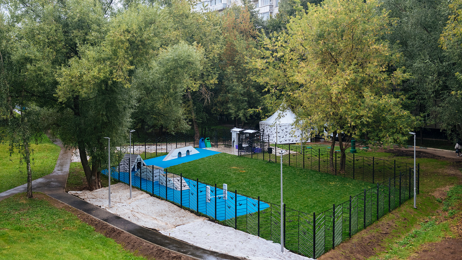 Основная отличительная черта площадки – продуманность с точки зрения безопасности и комфорта, как для питомца, так и для окружающих людей.