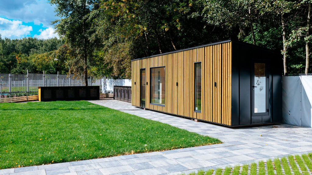 Площадка оснащена специальным входом-тамбуром, который предотвращает случайный выход собак с огражденной территории. На выходе стоят урны для отходов. А на выходах стоят док-боксы (урны для уборки за собаками) и контейнеры для раздельного сбора мусора.