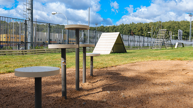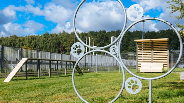 На площади около 3 000 м² был создан настоящий парк для собак. Здесь обустроили четыре зоны как для четвероногих, так и для их тренеров и хозяев: зону свободного выгула, тренировочную зону, зону для хранения обучающего инвентаря и зону отдыха хозяев, оборудованную всепогодными навесами и лавочками.
