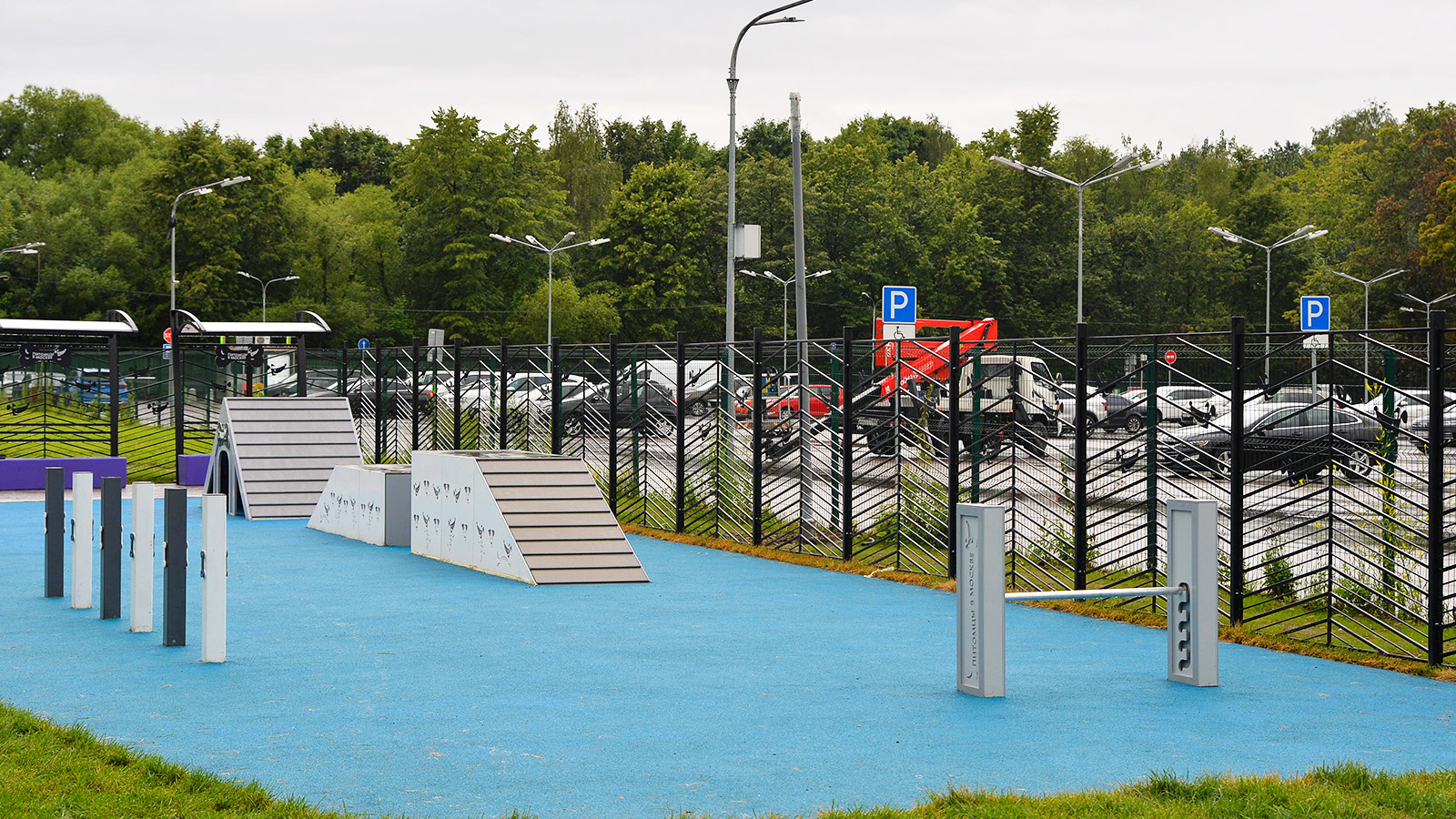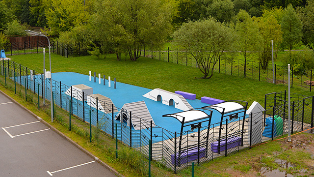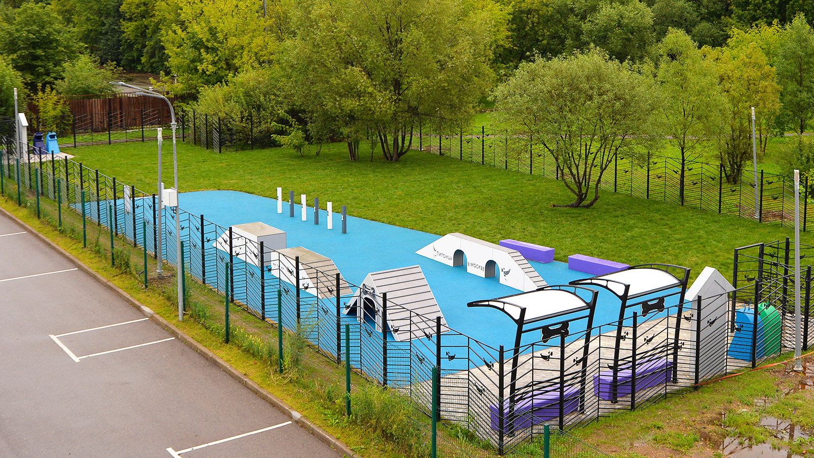 До благоустройства на месте этой площадки был неосвещённый пустырь. После реконструкции здесь появились зоны для тренировок и свободного выгула.