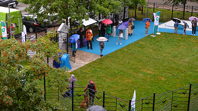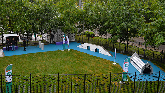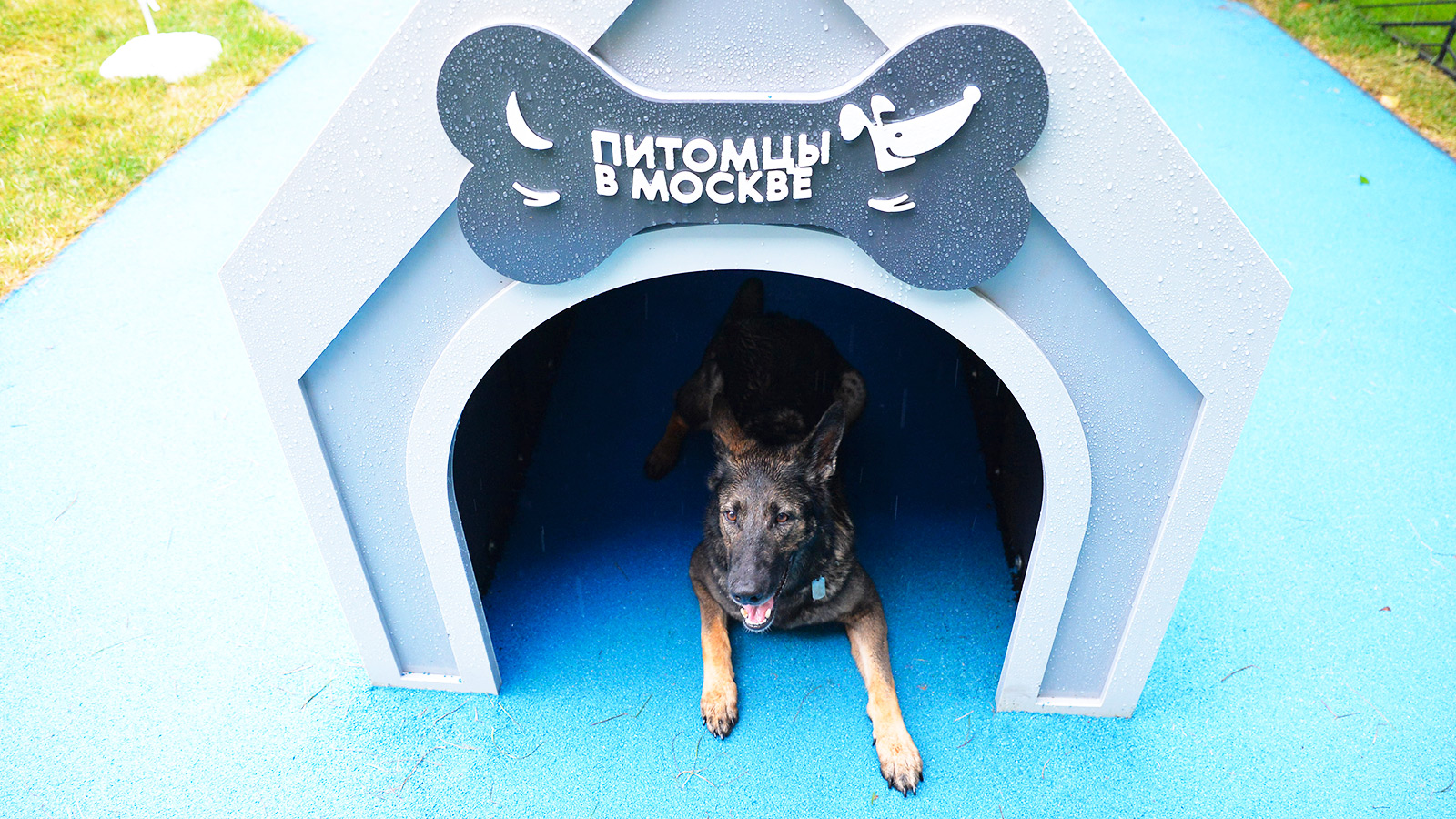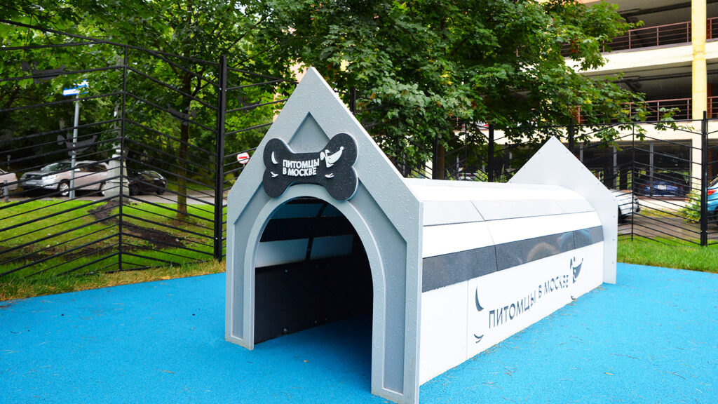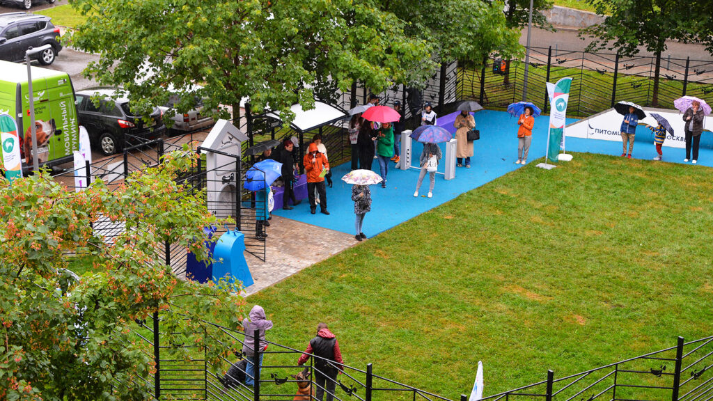 Для хозяев домашних питомцев размещена скамья с навесом, чтобы можно было и отдохнуть, и пообщаться.