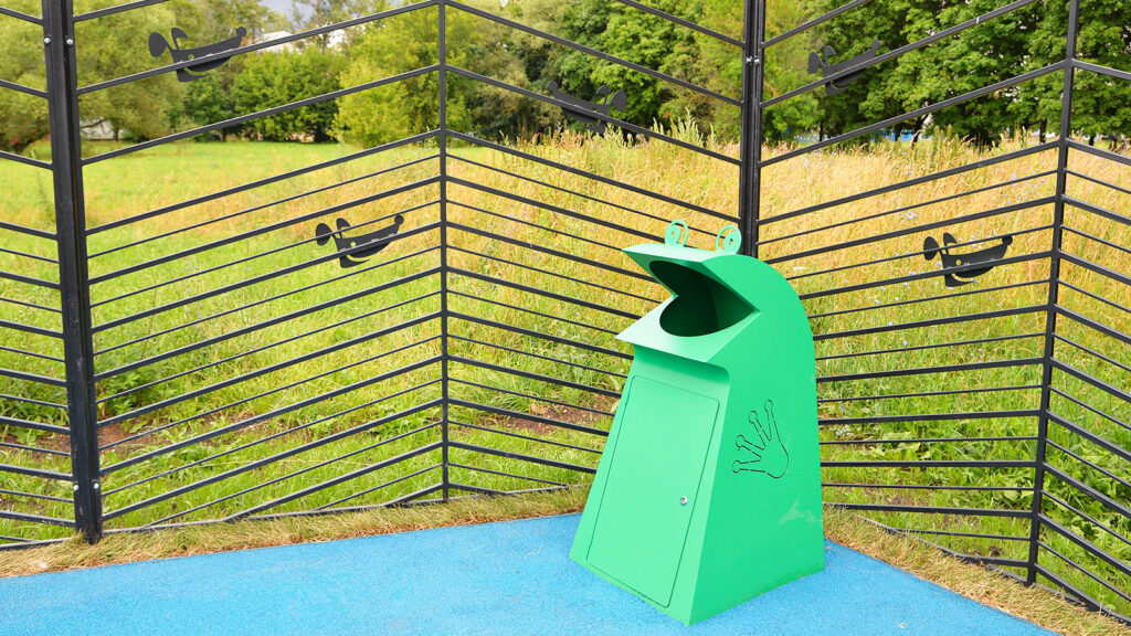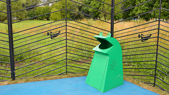Площадка оснащена входом-тамбуром с двойными воротами, которые предотвращают случайный выход собаки за пределы ограждённой территории. Установлены специальные контейнеры для уборки за питомцами и информационные стенды с актуальной информацией для владельцев собак.