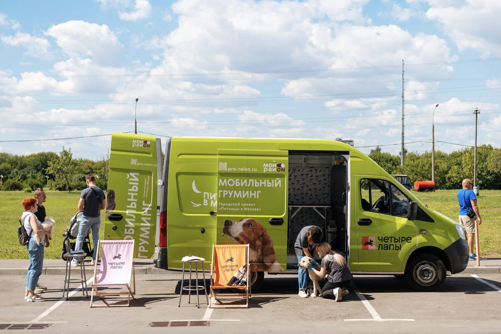 С 10 июня и до середины августа этого года для собак, живущих по соседству со строящимися площадками, по графику, размещенному на сайте, работают мобильные пункты груминга и ветеринарии. В список услуг грумеров входят: стрижка чёлки, создание прически, уход с помощью профессиональной косметики, подбор груминг-инструментов для домашнего ухода. На первичном приеме у ветеринарного врача владельцы домашних питомцев получают консультации по содержанию и кормлению, узнают, какие исследования необходимо провести, а питомцы проходят базовые процедуры, среди которых стрижка когтей, санация наружного слухового прохода и гигиеническая чистка ушей. Уточнить расписание работы мобильных пунктов груминга и ветеринарии и записаться на процедуры и консультацию можно на сайте пилотных проектов программы «Мой район».