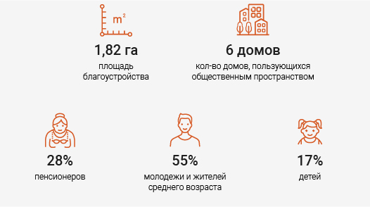 Эта территория была благоустроена методом соучаствующего проектирования. Авторами проекта стали жители соседних домов вместе с профессиональными архитекторами. В результате совместных обсуждений здесь появились пространства для людей разного возраста.