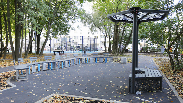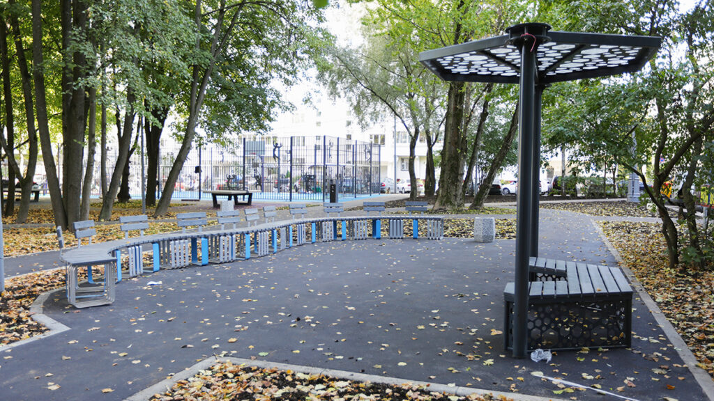 На площадках установлены скамейки для отдыха родителей. Для людей старшего поколения предусмотрены места отдыха, в том числе под навесом. Установлены шахматные столы.