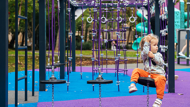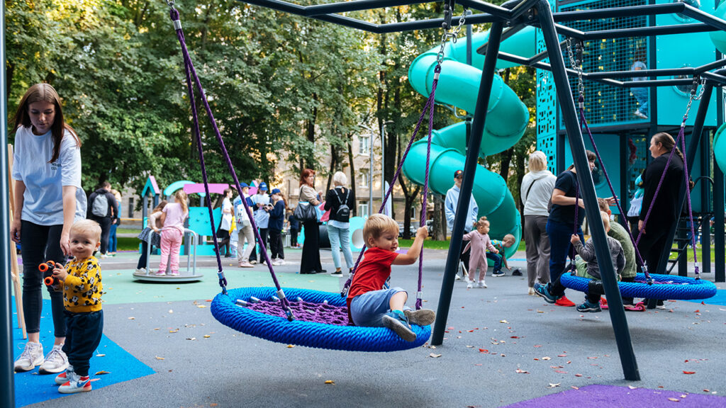 Одной из фишек площадки стала тарзанка и семиметровый игровой комплекс.