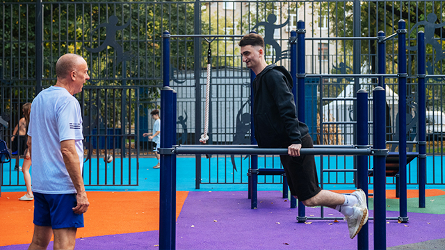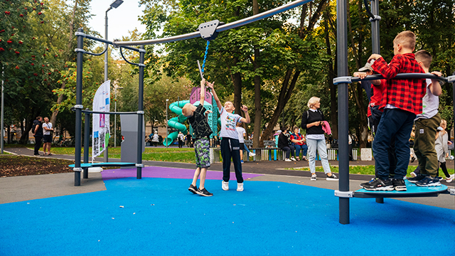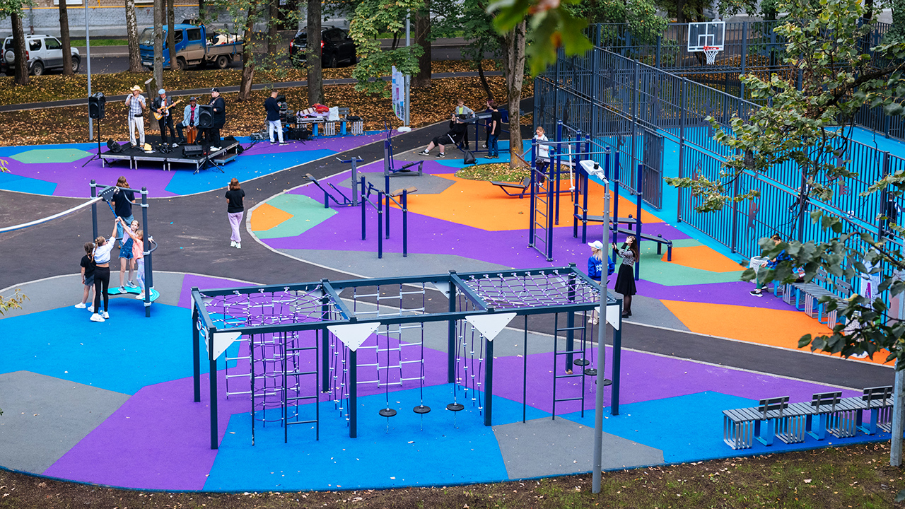 Универсальную площадку для спортивных игр полностью обновили, а в зоне воркаута установили современное оборудование.