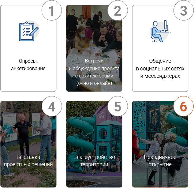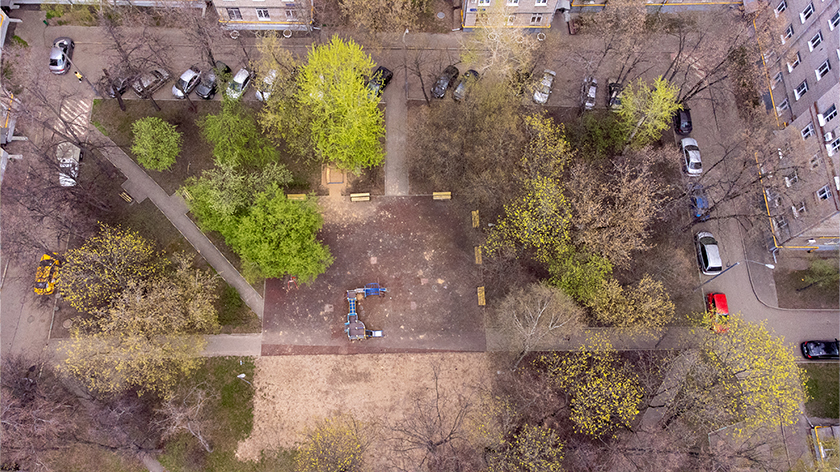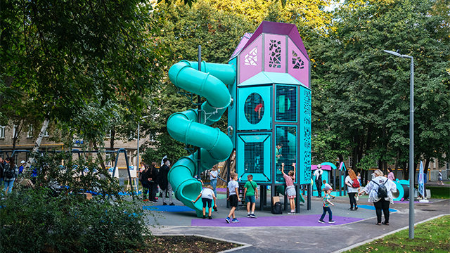 Эта территория была благоустроена методом соучаствующего проектирования. Авторами проекта стали жители соседних домов вместе с профессиональными архитекторами. В результате совместных обсуждений здесь появились пространства для людей разного возраста.