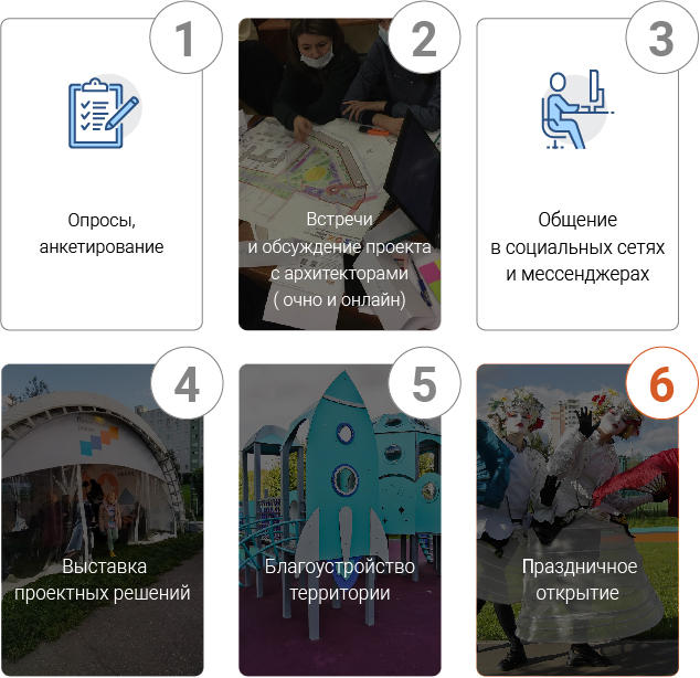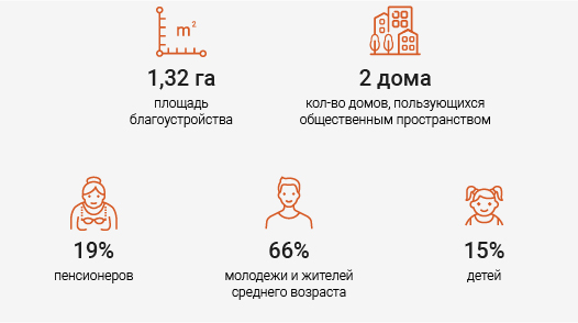 Эта территория была благоустроена методом соучаствующего проектирования. Авторами проекта стали жители соседних домов вместе с профессиональными архитекторами. В результате совместных обсуждений здесь появились пространства для людей разного возраста.