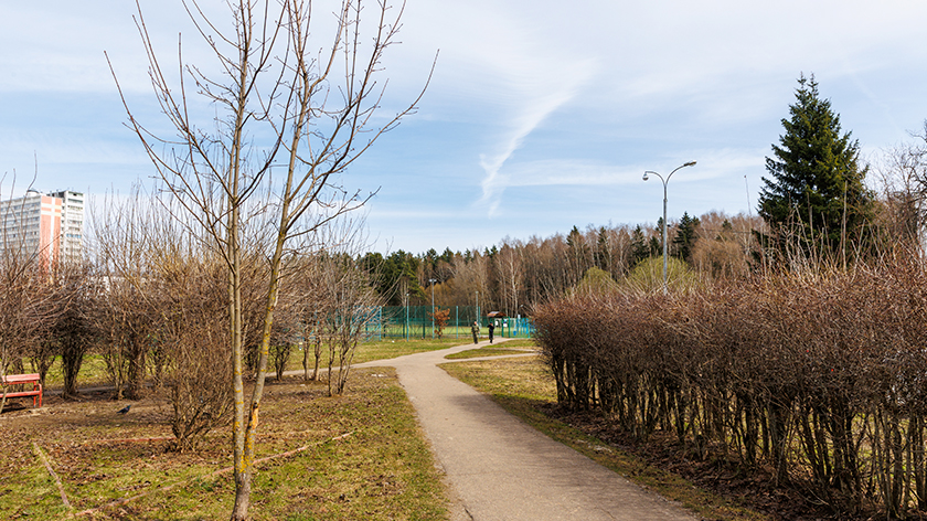 Транзитная дорожка, ведущая в лесопарк, расширена и благоустроена. Вдоль неё разместились зоны отдыха со скамейками, навесами и парковыми качелями.
