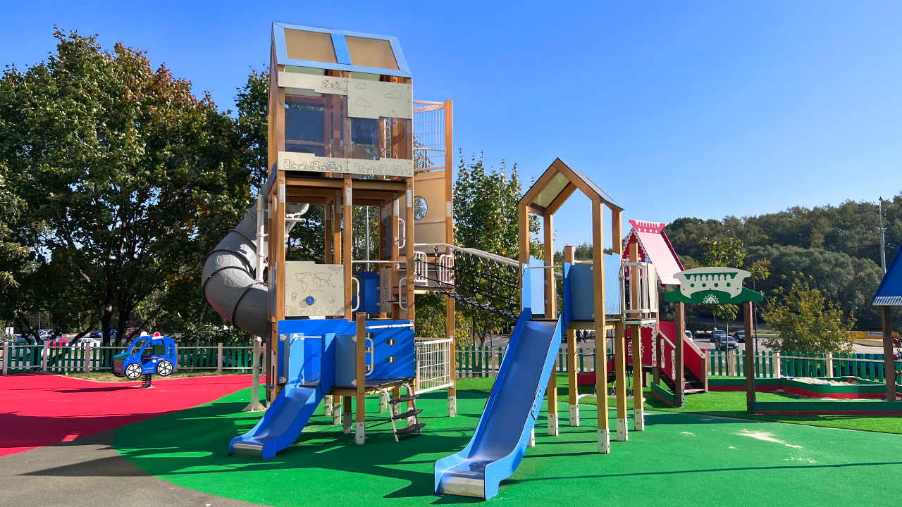 Рельеф территории позволил организовать всесезонное катание с горок и скалодромы для детей