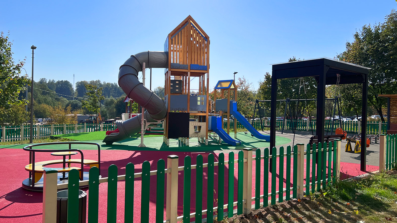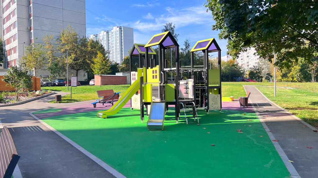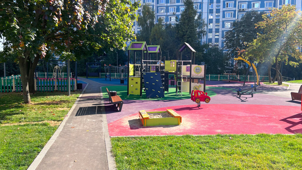 Рядом с каждым домом теперь находятся площадки для детей разных возрастов и зона для отдыха родителей с красивыми цветниками