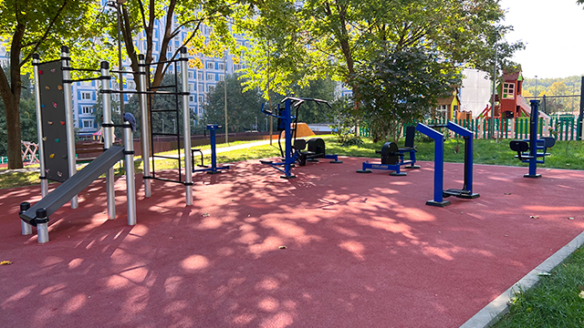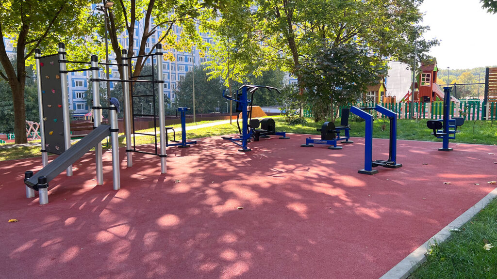 Спортивное ядро реконструировано и осталось в южной части двора, в зоне воркаута