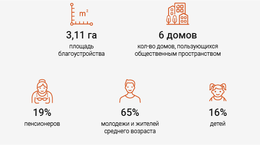 Эта территория была благоустроена методом соучаствующего проектирования. Авторами проекта стали жители близлежащих домов вместе с профессиональными архитекторами. В результате совместных обсуждений здесь появились пространства для людей всех возрастов и интересов.