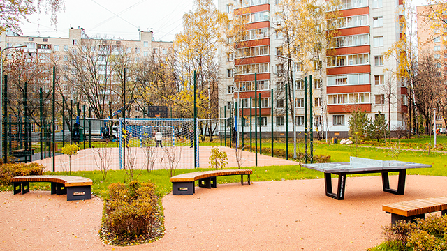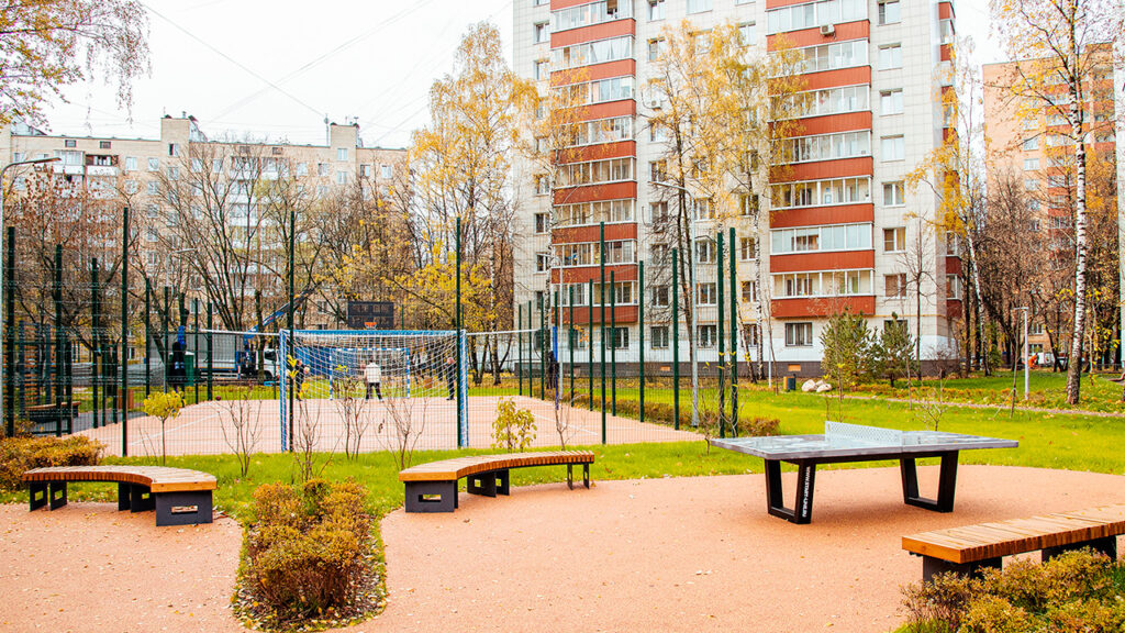 Обновилась спортивная зона – на ней появились тренажеры и площадка для пинг-понга, а также новая спортивная коробка.