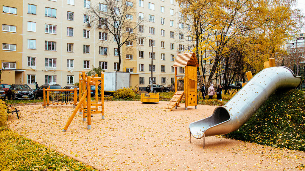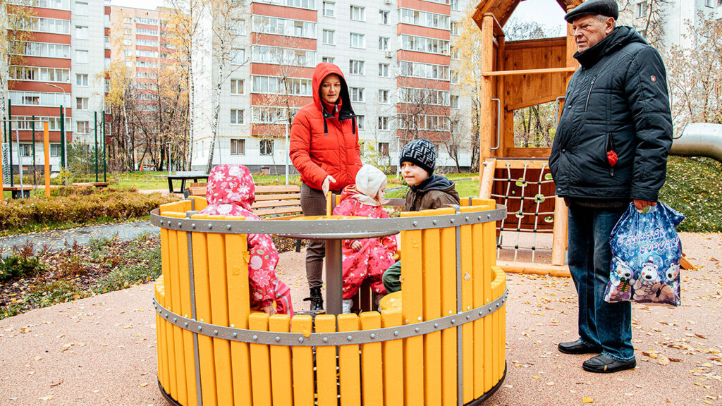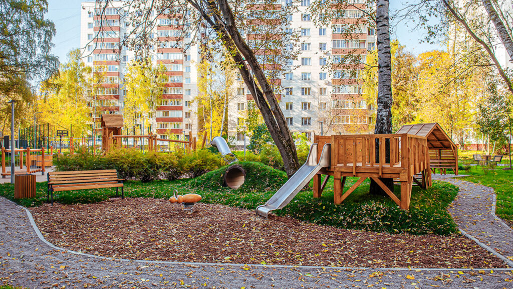 Концепцию общественного пространства в Лосиноостровском районе создавали с нуля. Здесь появились природные детские зоны для разных возрастов с различными игровыми сценариями.