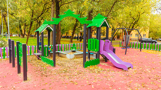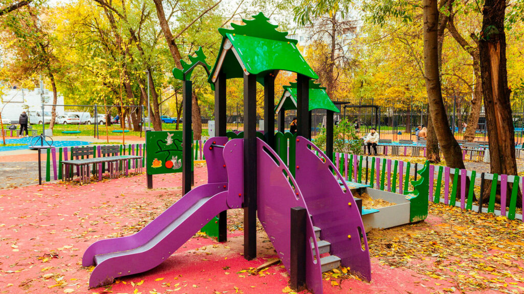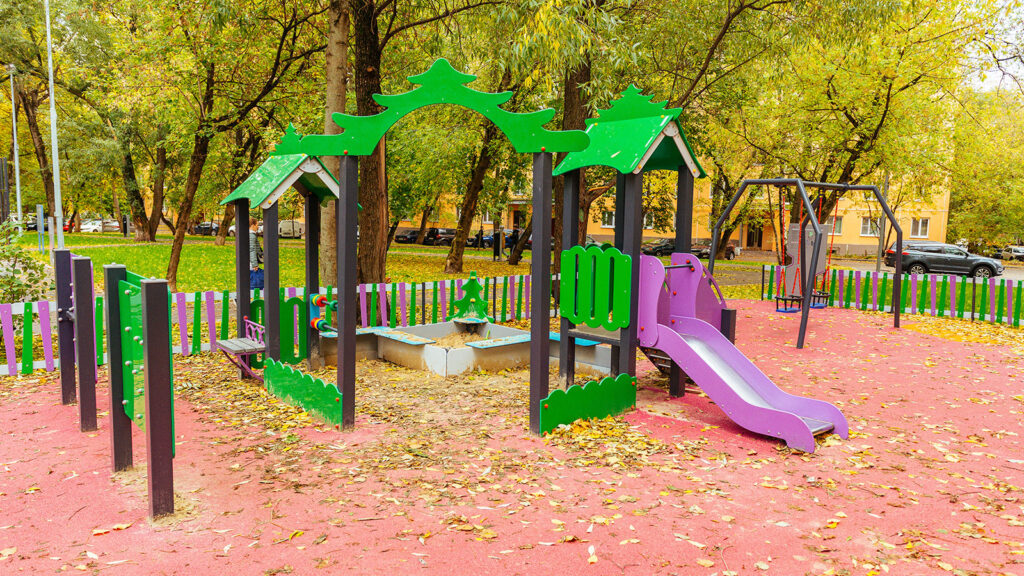 Для самых маленьких горожан обустроена безопасная и уютная площадка с игровым оборудованием, качелями и песочным двориком.