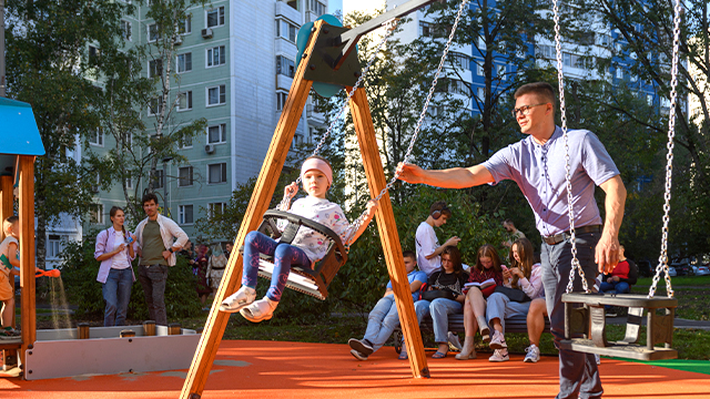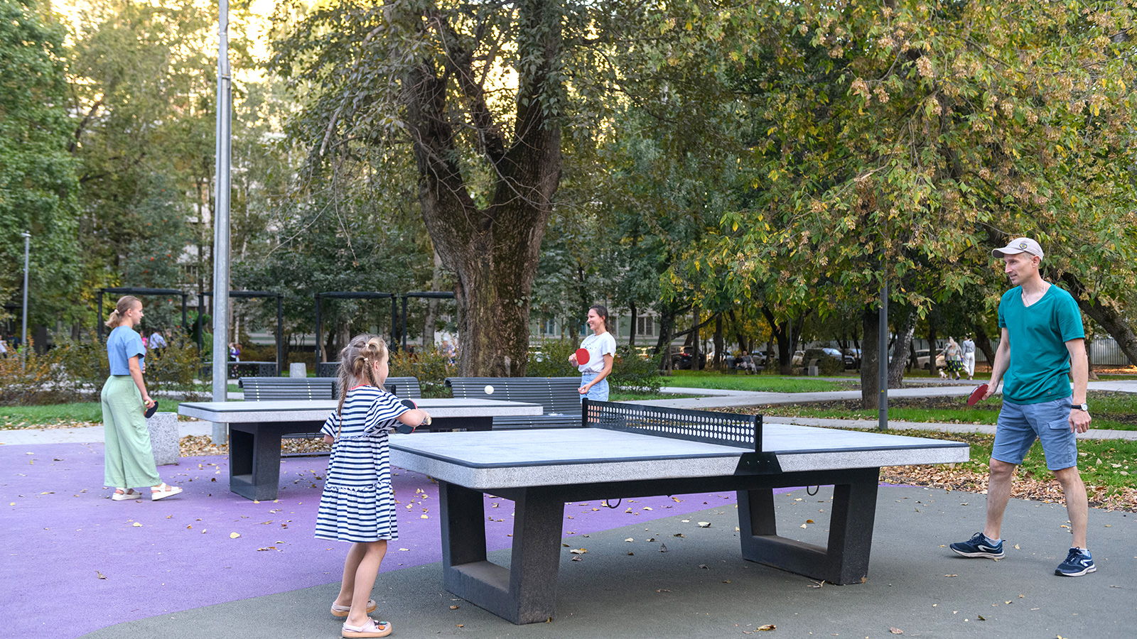 Обновилась зона спорта. Всесезонная спортивная коробка развернута таким образом, чтобы шум не тревожил жильцов. Появились теннисные столы, тренажеры со спортивным комплексом
