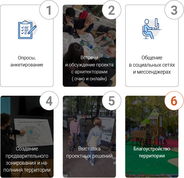 Эта территория была благоустроена методом соучаствующего проектирования. Авторами проекта стали жители близлежащих домов вместе с профессиональными архитекторами. В результате совместных обсуждений здесь появились пространства для людей всех возрастов и интересов.