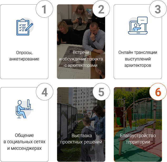 Эта территория была благоустроена методом соучаствующего проектирования. Авторами проекта стали жители соседних домов вместе с профессиональными архитекторами из бюро UTRO. В результате совместных обсуждений здесь появились пространства для людей разного возраста.