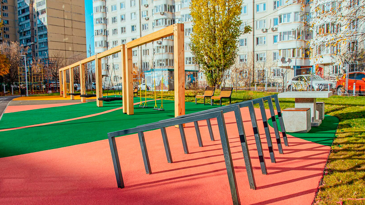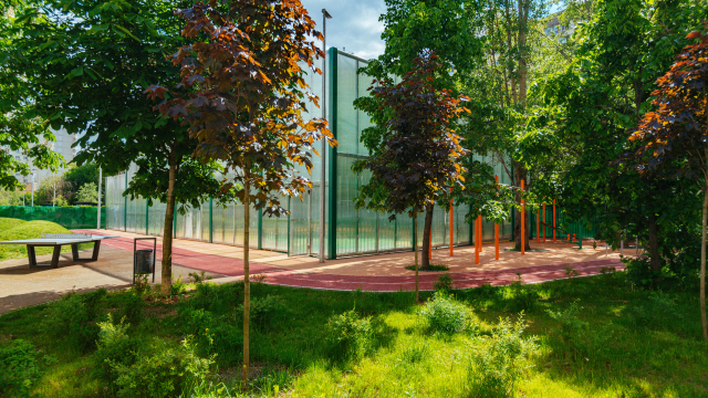 Особое внимание уделили безопасности жителей. Например, раньше между спортивной коробкой и заборами были темные проходы. Архитекторы перенесли коробку, оснастили ее прозрачным шумозащитным экраном, а вокруг коробки проложили беговую дорожку.